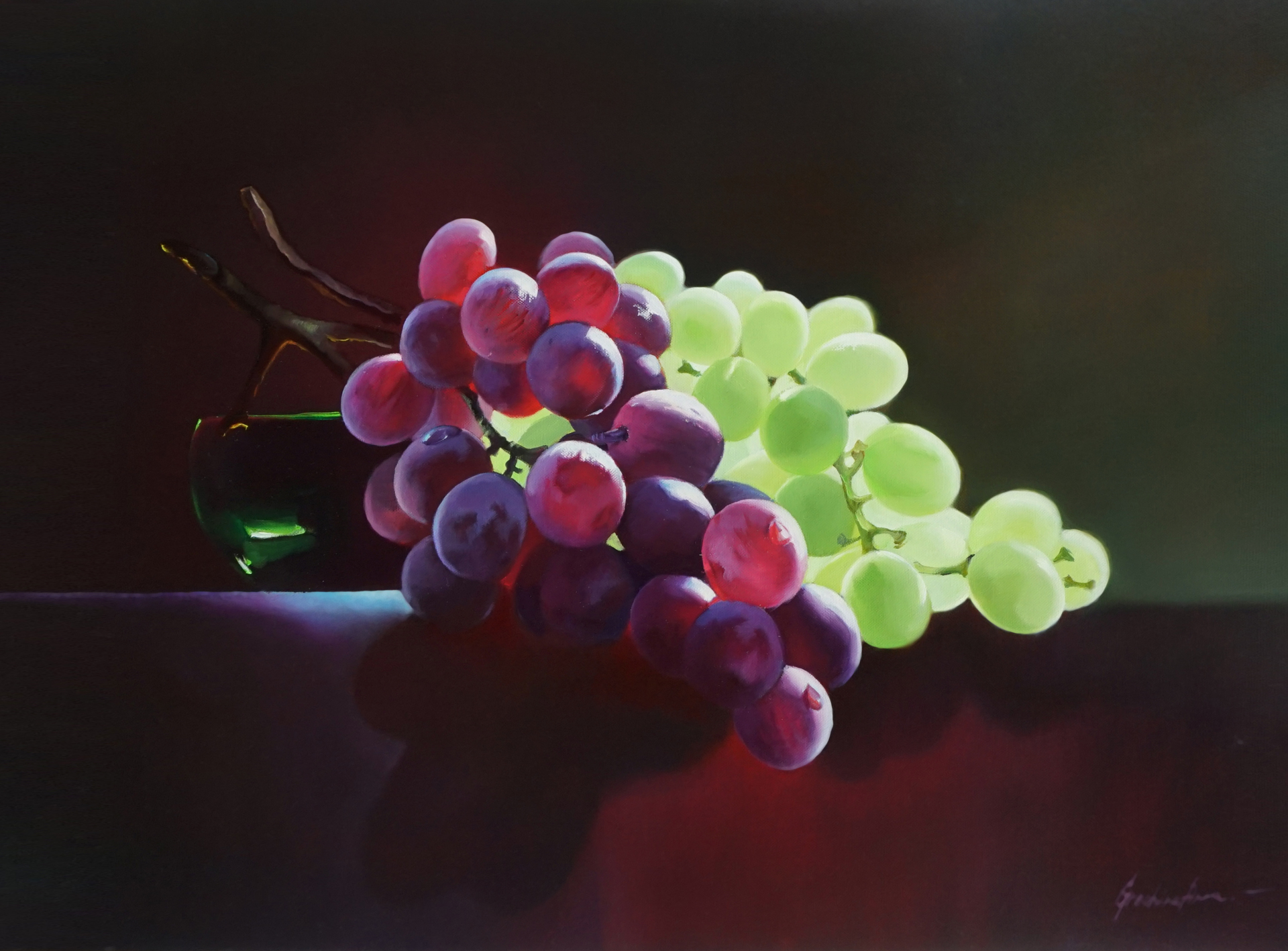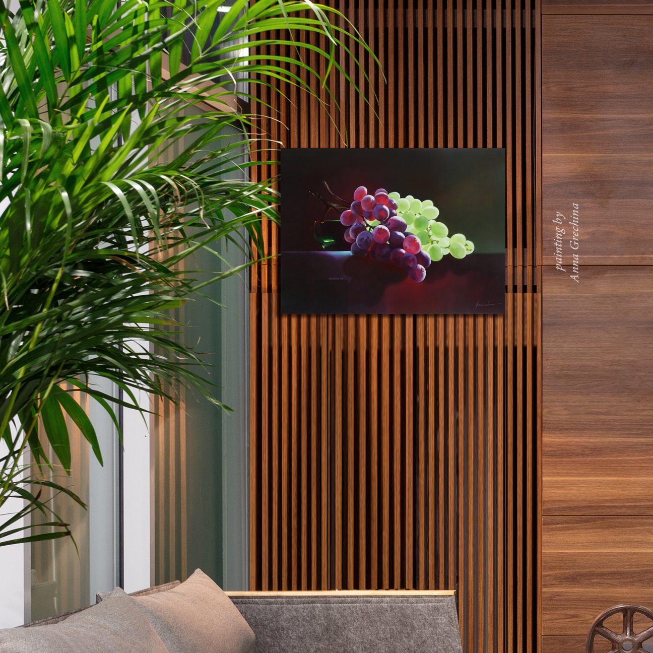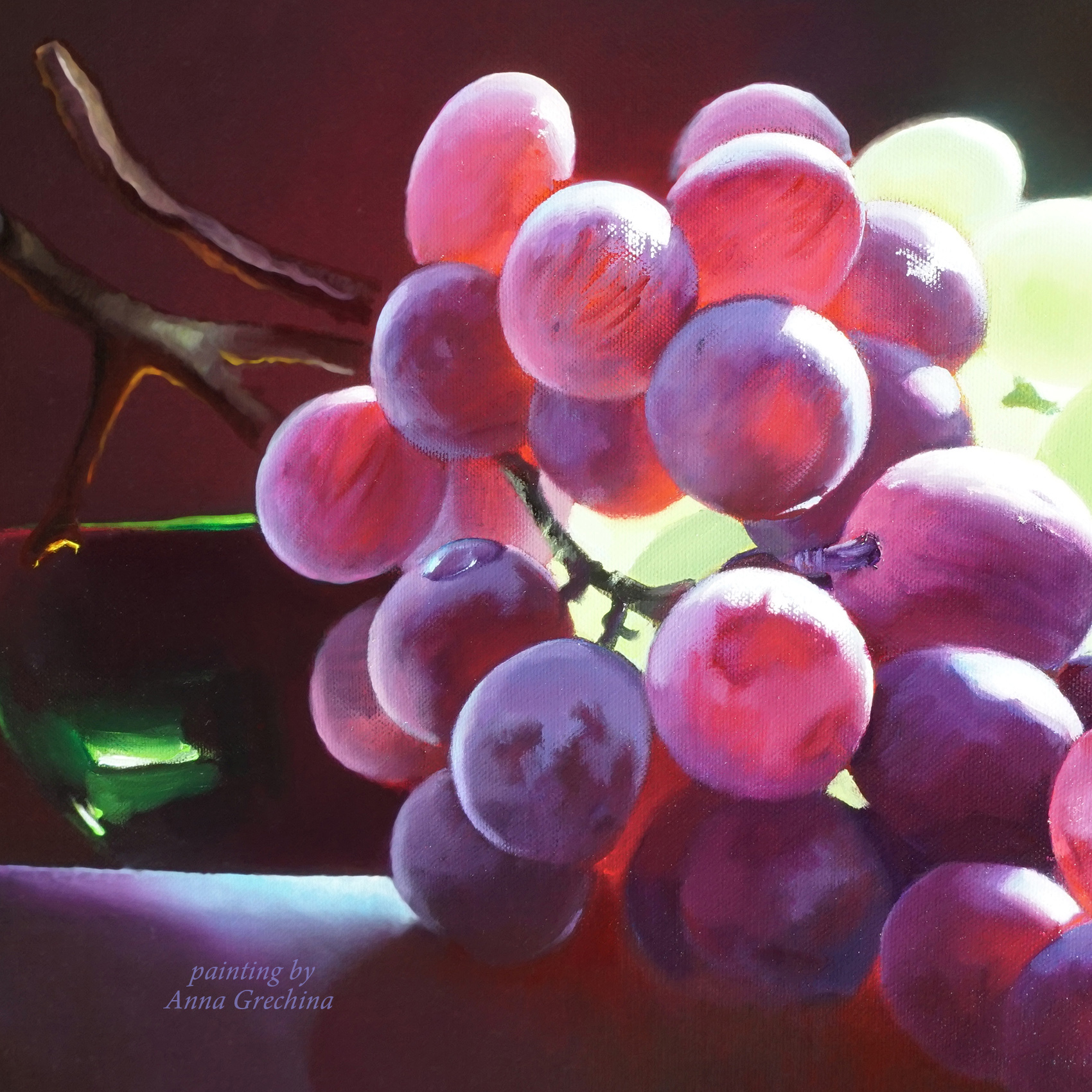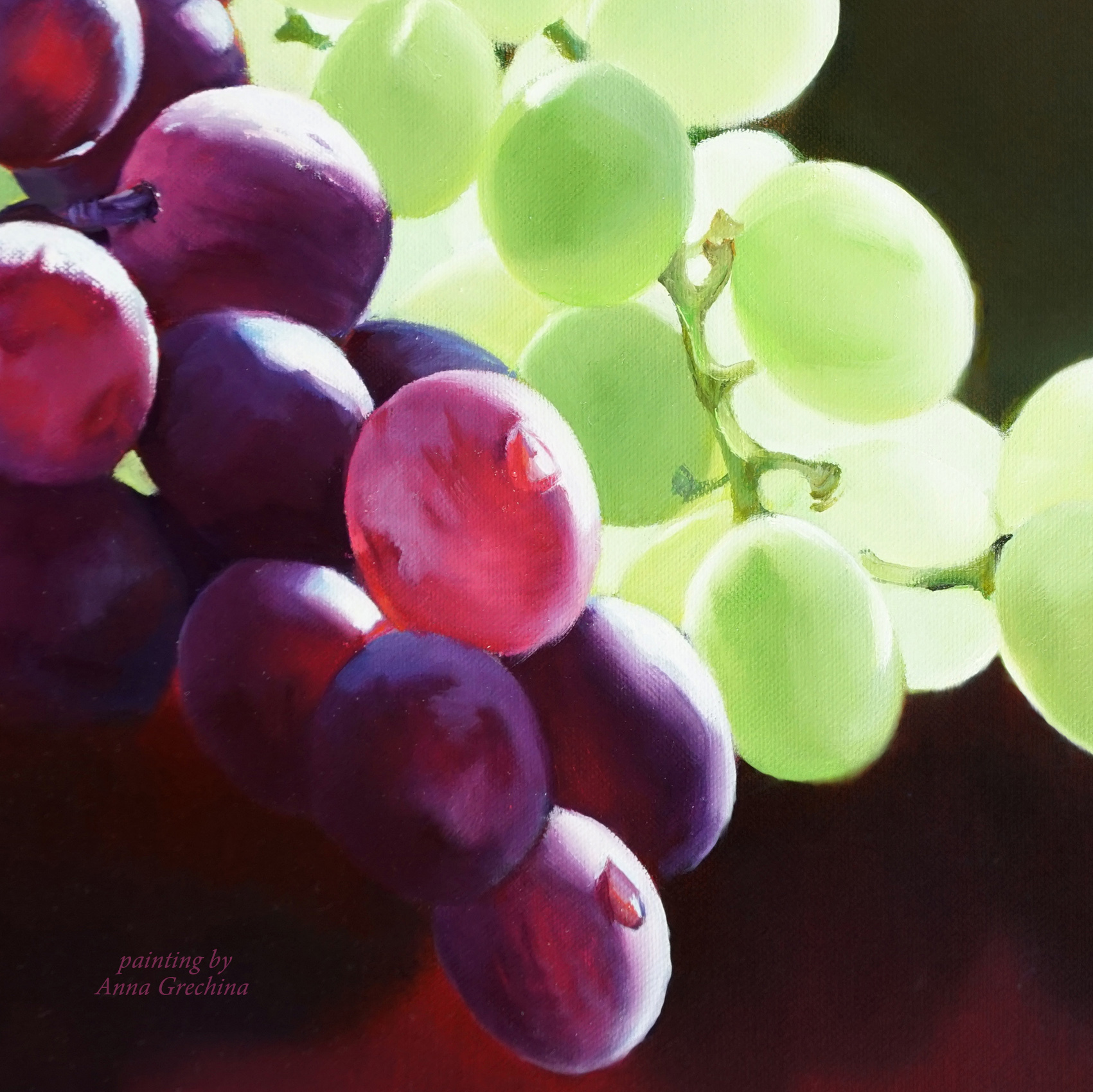 Картина с виноградом "Сладкий свет" ВЫПОЛНЯЕТСЯ НА ЗАКАЗ! Выполнение заказа от 2х месяцев. Точное повторение не возможно. ____________________________________________ --- Авторская живопись. Гиперреализм. Используются высококачественные художественные масляные краски, испанский холст, сборный подрамник, английский покрывной лак Winsor&Newton ПОКУПКА. --- ПОКУПКА КАРТИНЫ В МАСТЕРСКОЙ: Все работы вы можете посмотреть и приобрести у меня в мастерской в г. Москва, район Отрадное, по предварительной договоренности. --- ПРИМЕРКА КАРТИНЫ ON-LINE – в подарок! * (по желанию, возможно изготовление эскиза –привязки картины в фотографию интерьера покупателя.) --- ОПЛАТА: 100% суммы перед отправкой картины покупателю. --- ДОСТАВКА: для пересылки в другой город работа надежно упаковывается и может быть отправлена в коробе или тубусе. Почтовые и транспортные компании согласовываются с покупателем индивидуально. Стоимость почтовых и транспортных перевозок оплачивает покупатель. --- ПРИМЕРКА В ИНТЕРЬЕРЕ: Для жителей Москвы есть возможность примерки картин в интерьере. Перевозку картин для примерки оплачивает покупатель. --- КАРТИНЫ НА ЗАКАЗ: по желанию заказчика, я могу сделать повтор своей работы в другом размере, если это нужно для интерьера. Срок изготовления заказов от 2х месяцев, точное повторение невозможно. При выполнении заказа берется аванс. Стоимость заказа и сумма аванса обговаривается индивидуально. --- Для отправки картины в другое государство возможно изготовление сертификата на вывоз от Министерства культуры Российской Федерации.