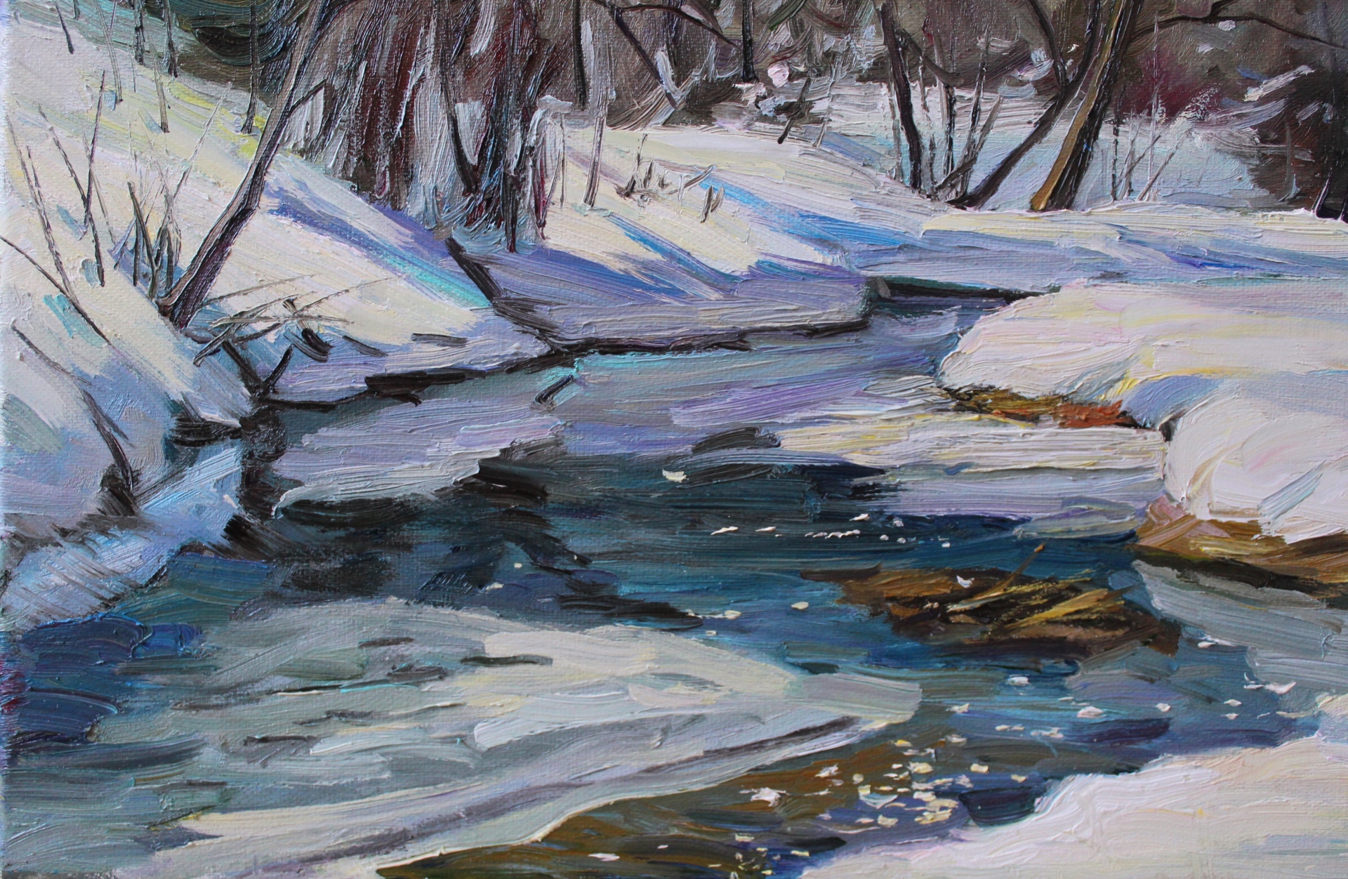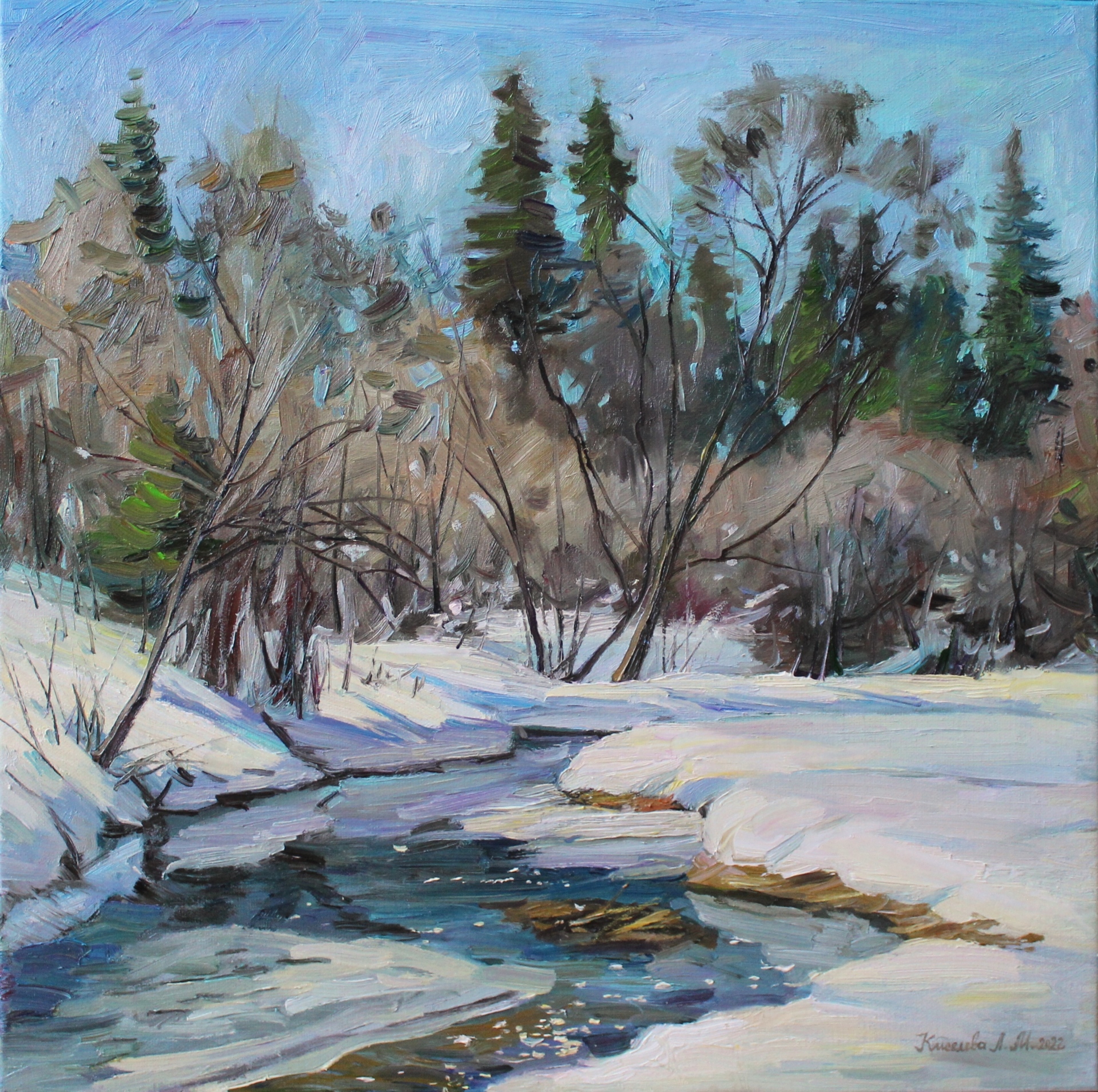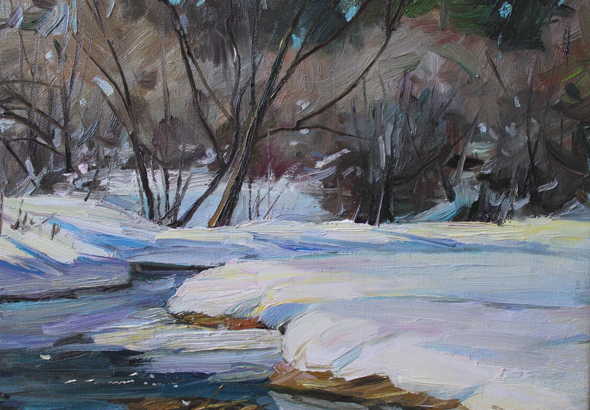 Картина написана с натуры в поселке Менделеево, Солнечногорский район, речка Клязьма. Оформлена в раму. Покрыта лаком.