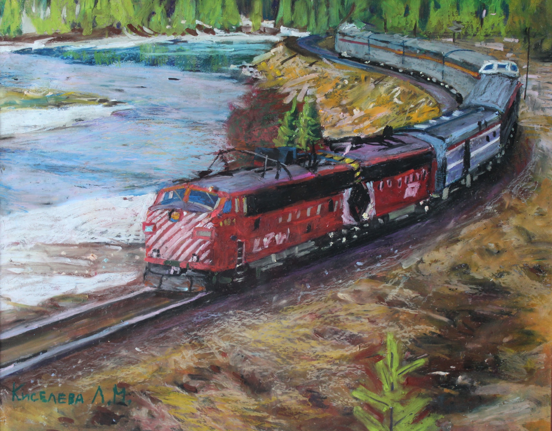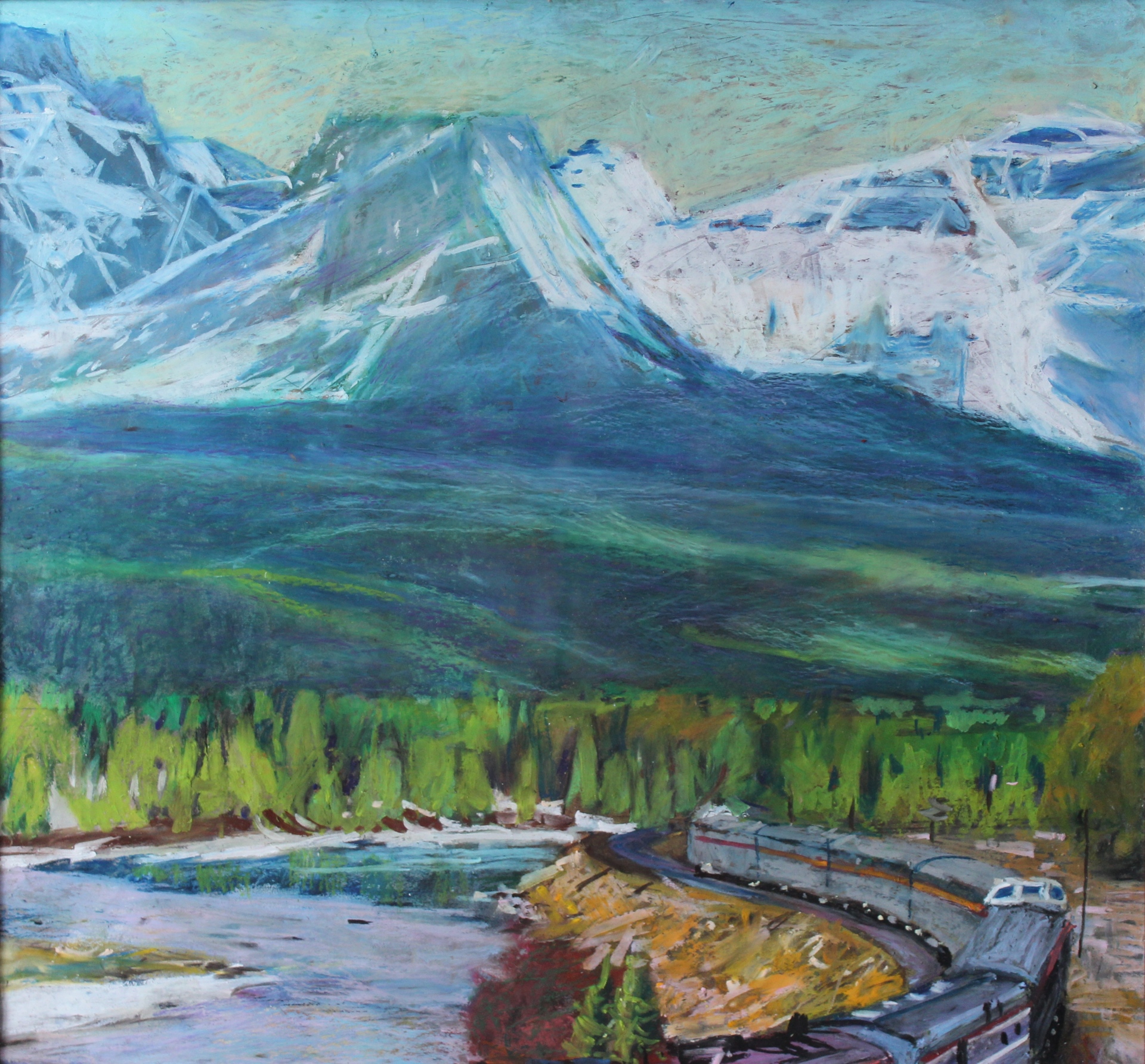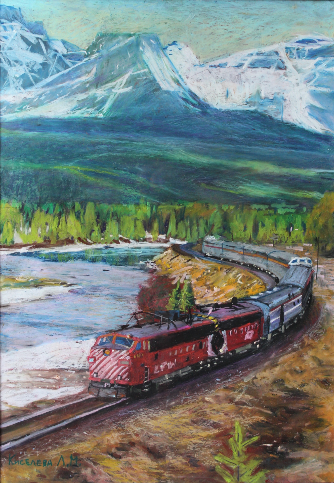 Канадская Тихоокеанская железная дорога. Размер 40х60. Бумага, масляная пастель Van Gogh, финишный лак. В раме под стеклом, без паспарту.