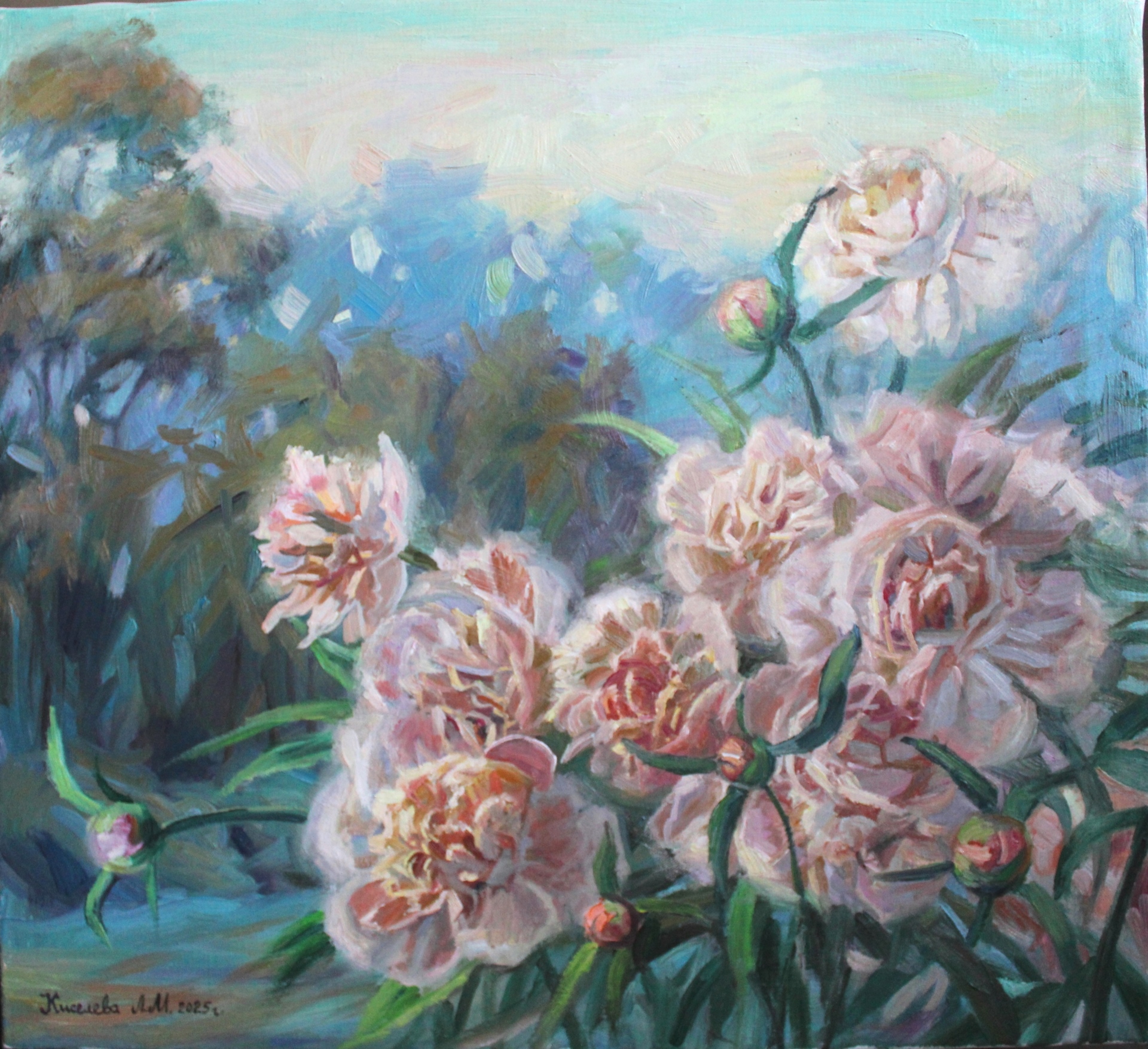 Картина в раме, написана на холсте с подрамником, покрыта лаком.