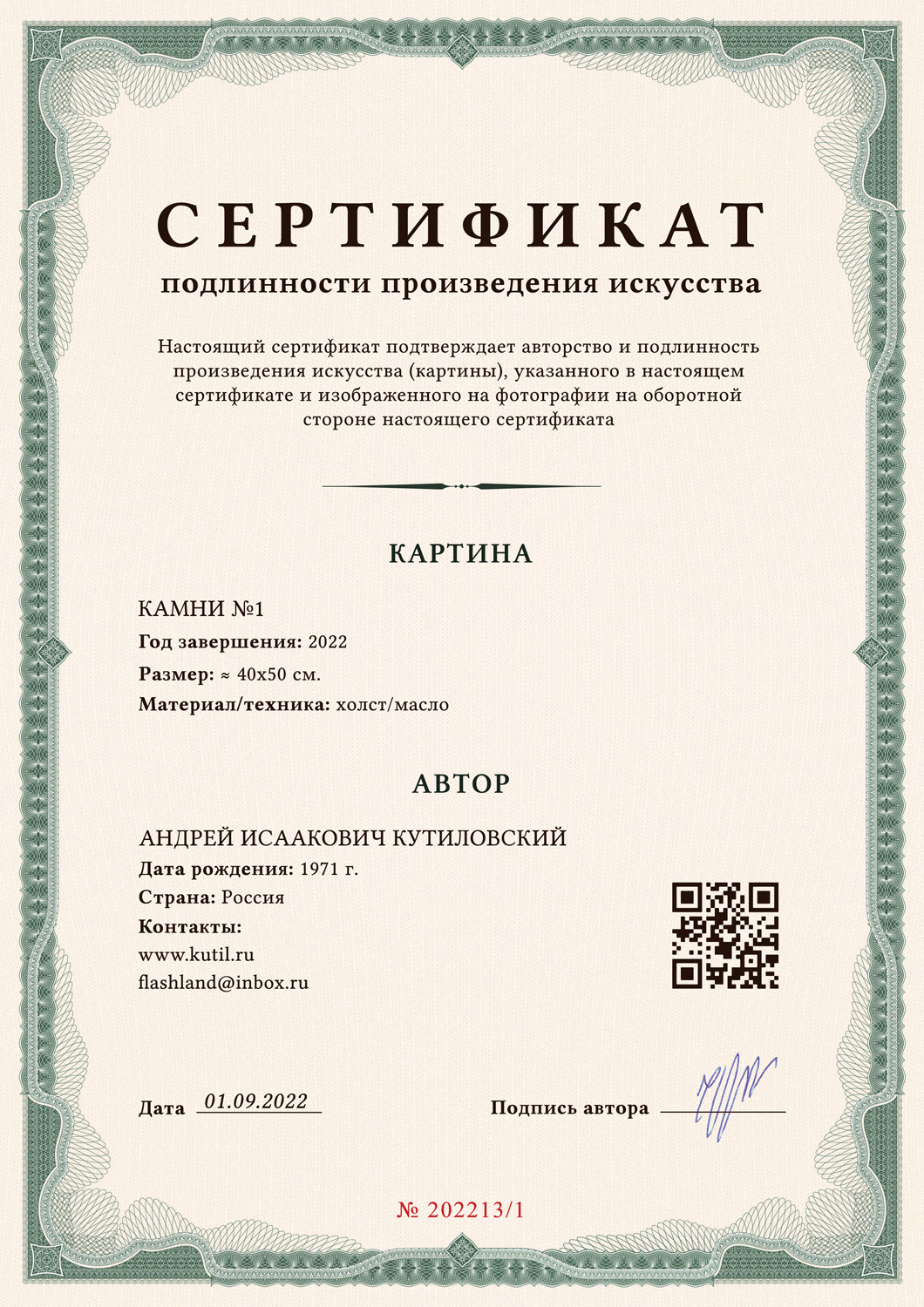 Материал: масло, холст на МДФ (Medium Density Fibreboard). Сертификат подлинности: прилагается, с подписью автора.