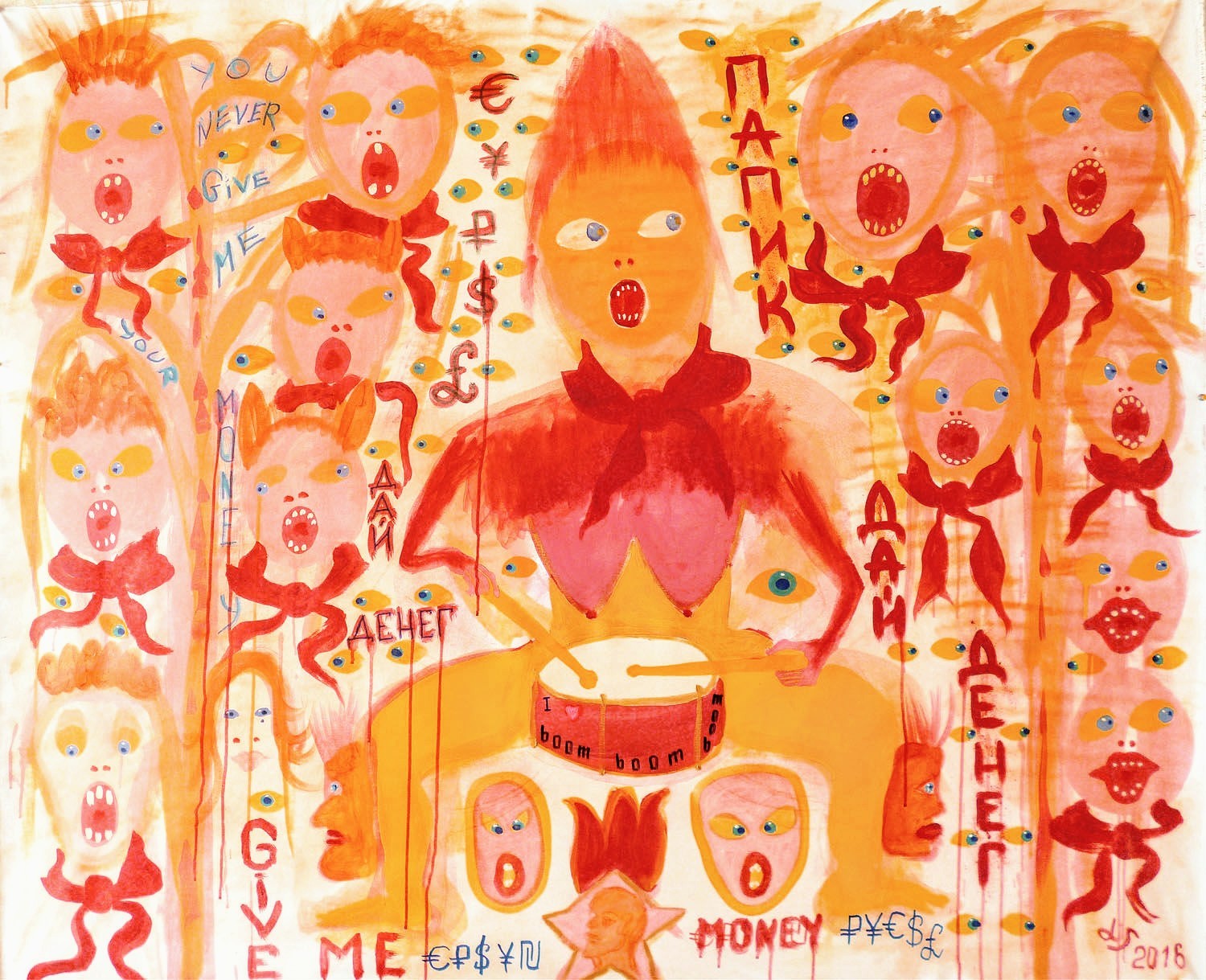 Видел на улице рекламу банка на билборде. Девушки кричали:"Папа, дай деньги!" Создал свою композицию.