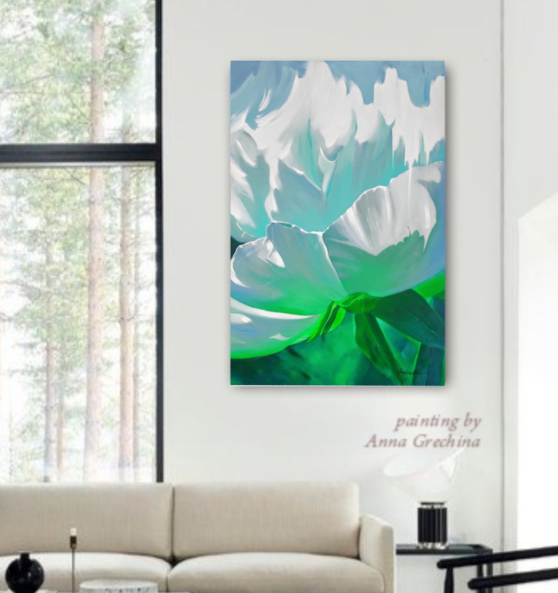 Картина в наличии! --- Авторская живопись. Используются высококачественные художественные масляные краски, испанский холст, сборный подрамник, покрывной лак . ПОКУПКА. --- ПОКУПКА КАРТИНЫ В МАСТЕРСКОЙ: Все работы вы можете посмотреть и приобрести у меня в мастерской в г. Москва, район Отрадное, по предварительной договоренности. --- ПРИМЕРКА КАРТИНЫ ON-LINE – в подарок! * (по желанию, возможно изготовление эскиза –привязки картины в фотографию интерьера покупателя.) --- ОПЛАТА: 100% суммы перед отправкой картины покупателю. --- ДОСТАВКА: для пересылки в другой город работа надежно упаковывается и может быть отправлена в коробе или тубусе. Почтовые и транспортные компании согласовываются с покупателем индивидуально. Стоимость почтовых и транспортных перевозок оплачивает покупатель. --- ПРИМЕРКА В ИНТЕРЬЕРЕ: Для жителей Москвы есть возможность примерки картин в интерьере. Перевозку картин для примерки оплачивает покупатель. --- КАРТИНЫ НА ЗАКАЗ: по желанию заказчика, я могу сделать повтор своей работы в другом размере, если это нужно для интерьера. Срок изготовления заказов от 2х месяцев, точное повторение невозможно. При выполнении заказа берется аванс. Стоимость заказа и сумма аванса обговаривается индивидуально. --- Для отправки картины в другое государство возможно изготовление сертификата на вывоз от Министерства культуры Российской Федерации.