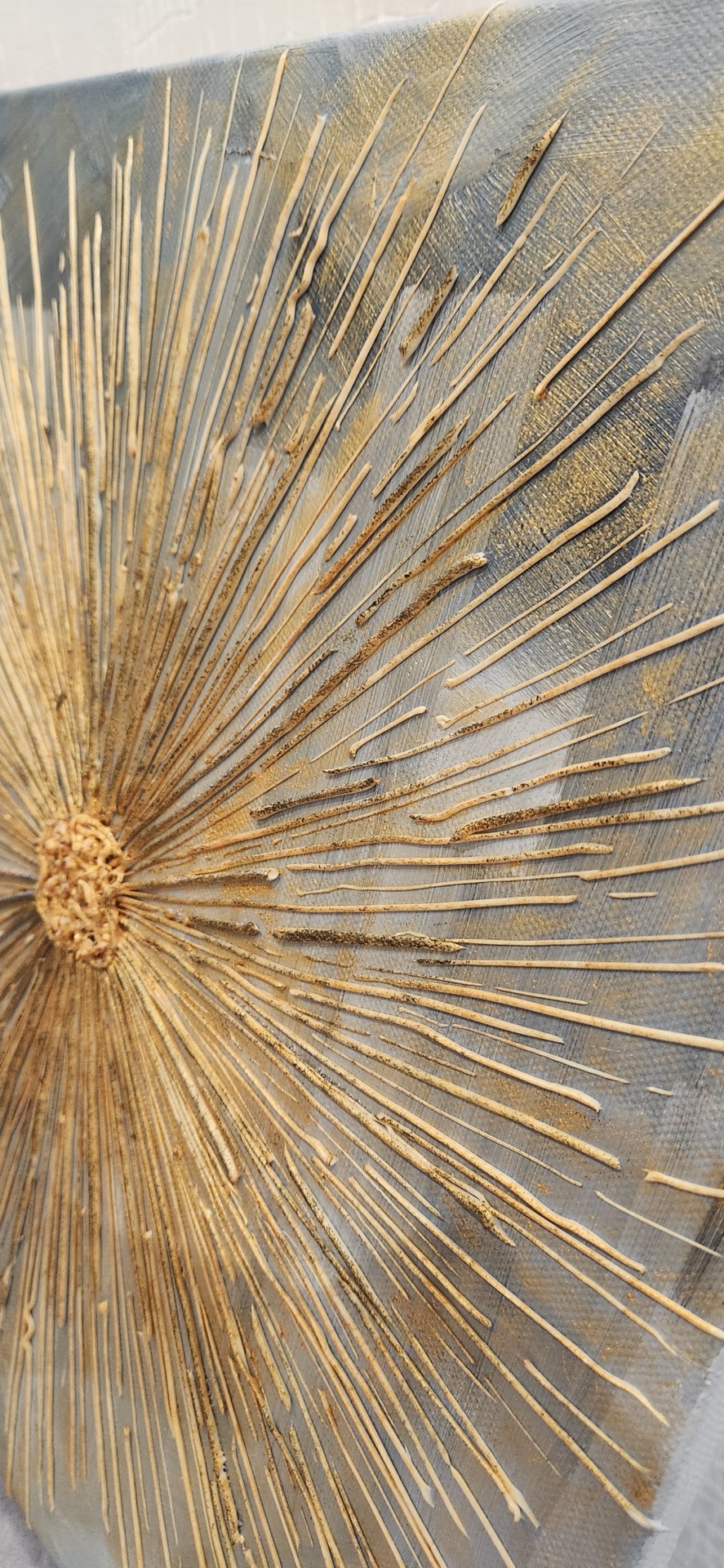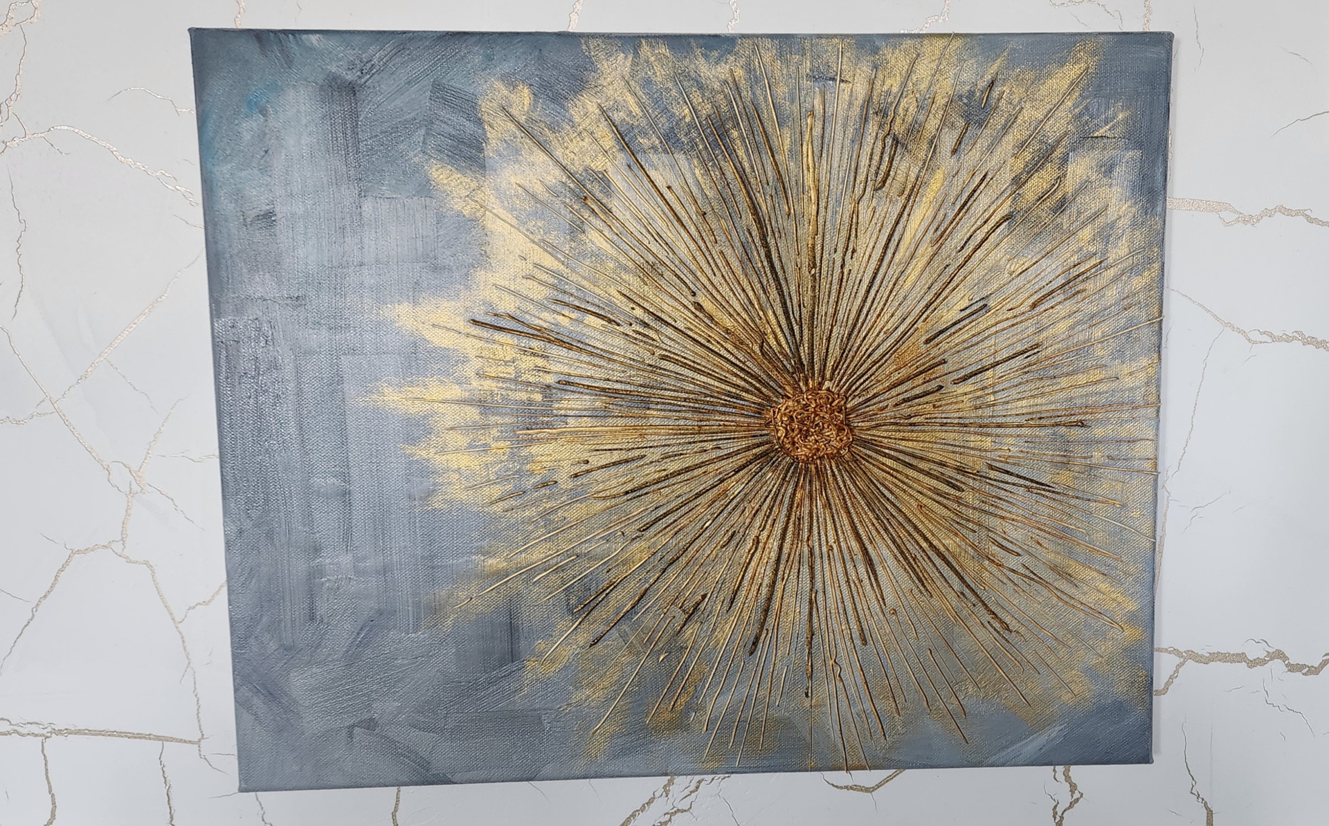 На полотне раскрывается уникальное сочетание урбанистической атмосферы и природной красоты. Серо-голубой фон передает динамику и ритм современного города, создавая ощущение пространства и глубины. В центре композиции – объемный городской одуванчик, который становится символом жизни среди каменных джунглей. Лепестки цветка выполнены золотыми оттенками, излучающими свет и тепло, добавляя картине яркости и выразительности. Легкое чернение придает изображению глубину и реализм, подчеркивая контрасты и нюансы. Эта картина станет изысканным дополнением любого интерьера, привнося в него нотки природы и вдохновения.