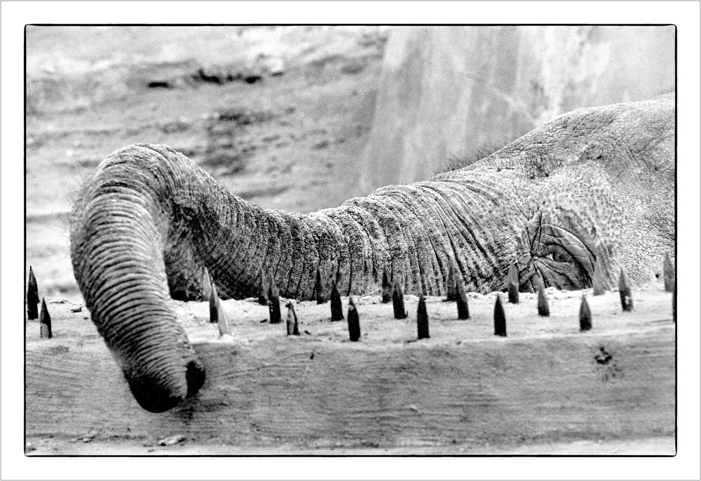 Снимок сделан в слоновнике Московского зоопарка. Авторский принт с оцифрованного негатива на плотной матовой бумаге с подписью фотографа на обороте.