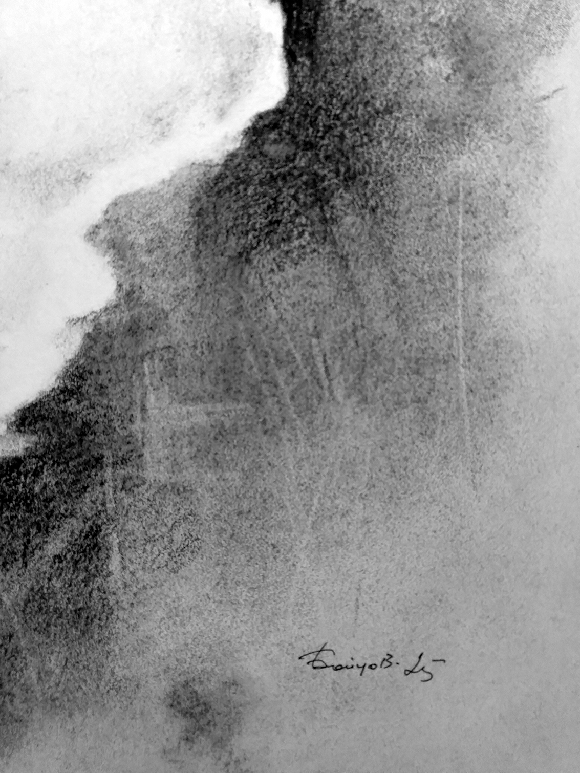 2025 © A. Бойцов 33 х 38 см. Вы можете заказать другой размер. Уголь на бумаге. Работа подписана автором. Рисунок обработан графическим закрепителем. Дополнительная конструкция отсутствует