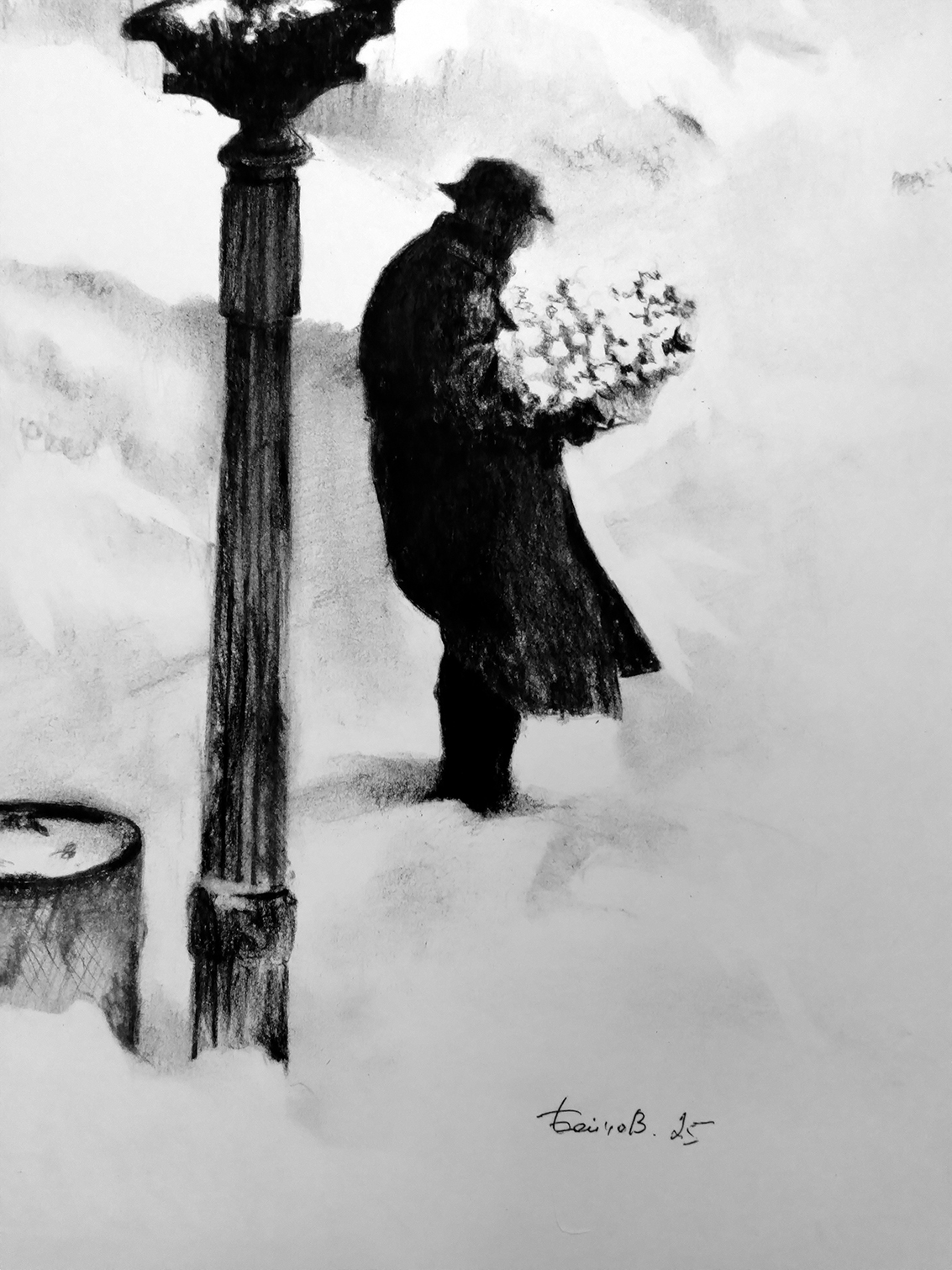 2025 © A. Бойцов 26 х 40 см. Вы можете заказать другой размер. Уголь на бумаге. Работа подписана автором. Рисунок обработан графическим закрепителем. Дополнительная конструкция отсутствует