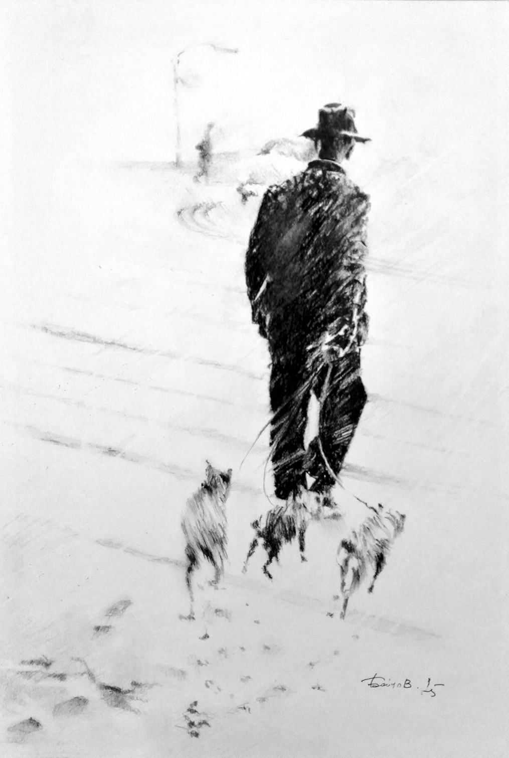 2025 © A. Бойцов 24 х 35 см. Вы можете заказать другой размер. Уголь на бумаге. Работа подписана автором. Рисунок обработан графическим закрепителем. Дополнительная конструкция отсутствует