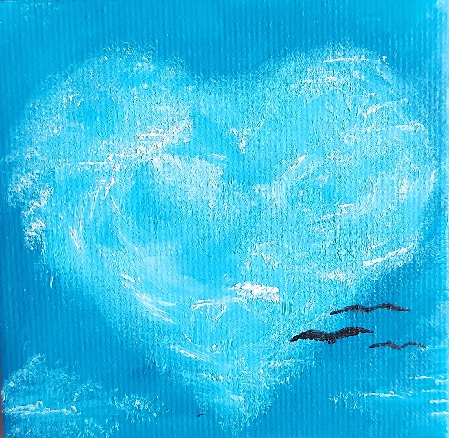 ? Мини-картина. Подарочная упаковка + мини-мольберт. Что, если любовь может быть лёгкой? Что, если она появляется из ниоткуда — как облако в форме сердца на ясном голубом небе? Эта крошечная картина будто создана, чтобы напомнить: счастье — в простом. Небо. Воздух. Мгновение. И вдруг — сердце, нарисованное ветром. ? Кому подойдёт? — В подарок любимому человеку ? — Коллеге — как символ добрых чувств — В интерьер спальни, рабочего стола или детской — Или… просто себе — как тихое «я тебя люблю» каждый день