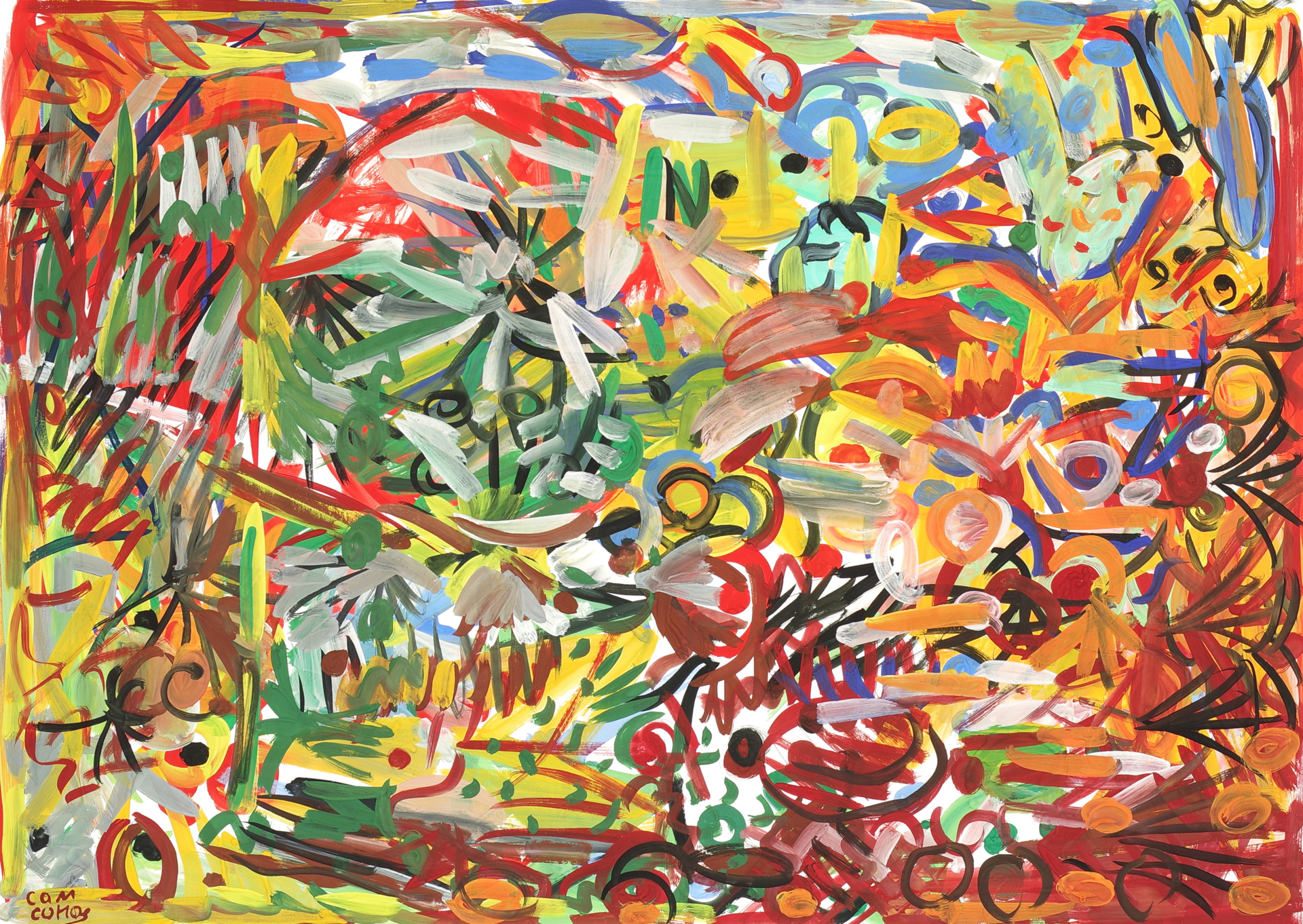 Работа исполнена в стиле Абстрактного экспрессионизма, на бумаге, гуашью