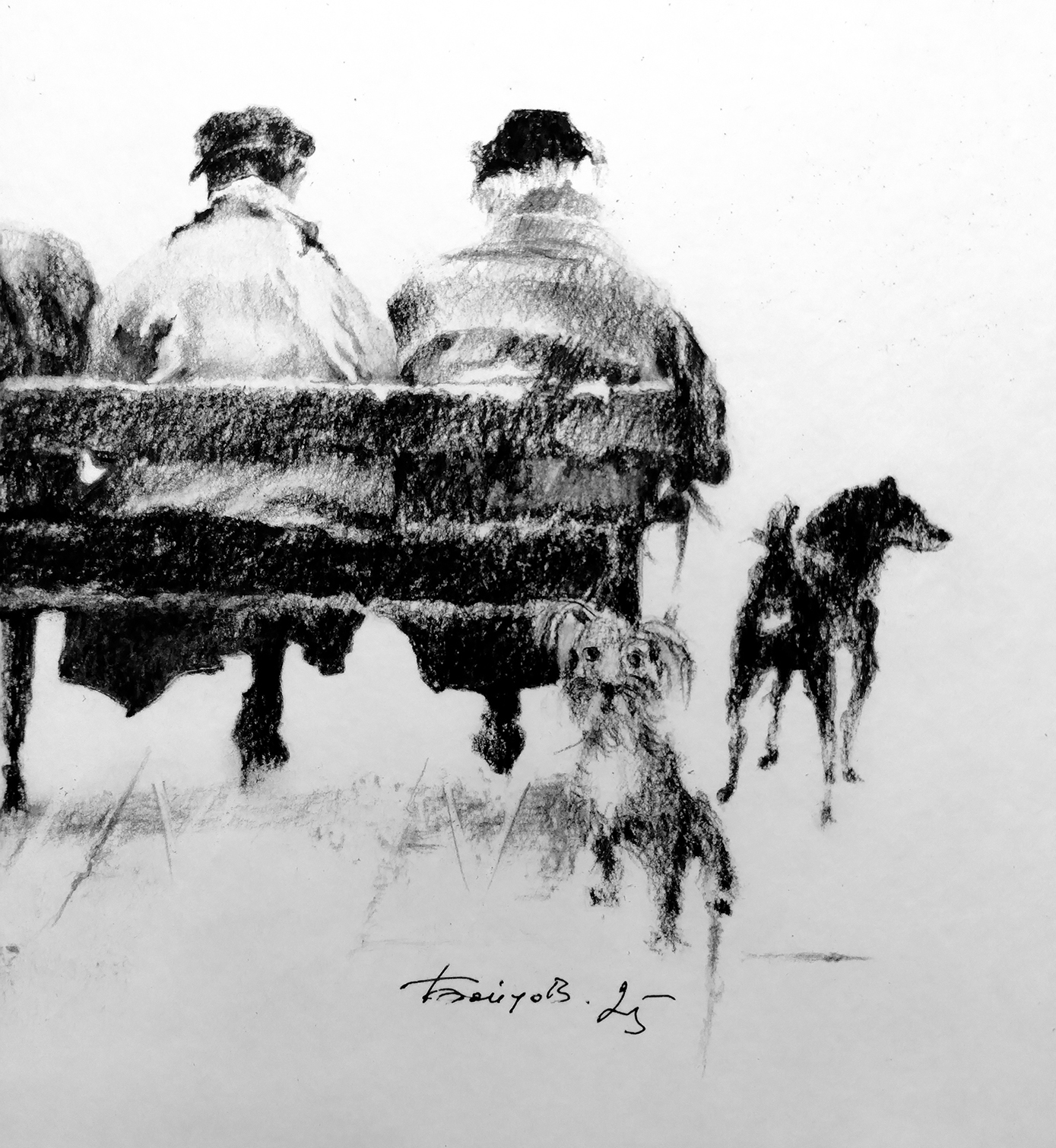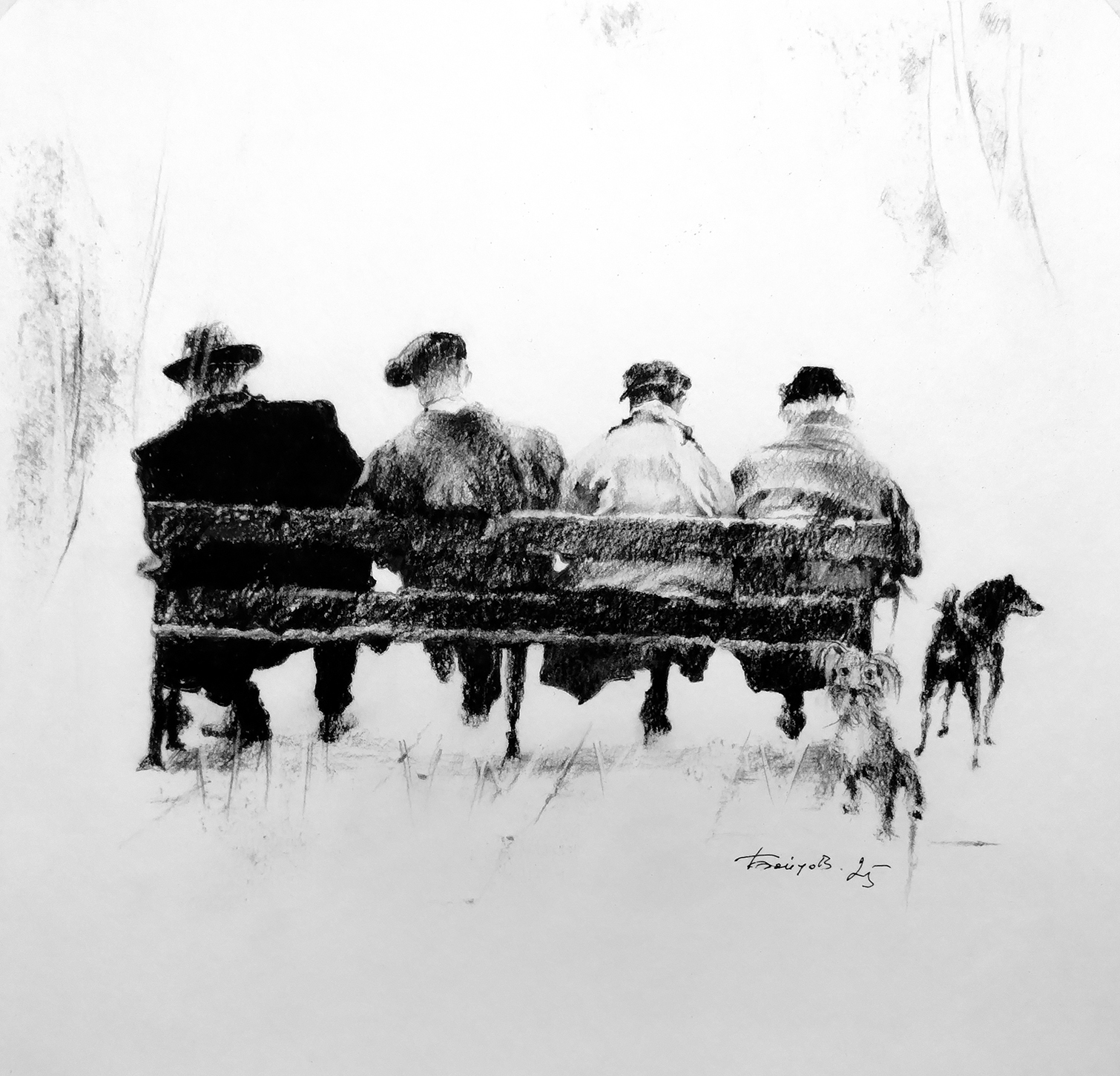 2025 © A. Бойцов 29 х 30 см. Вы можете заказать другой размер. Уголь на бумаге. Работа подписана автором. Рисунок обработан графическим закрепителем. Дополнительная конструкция отсутствует