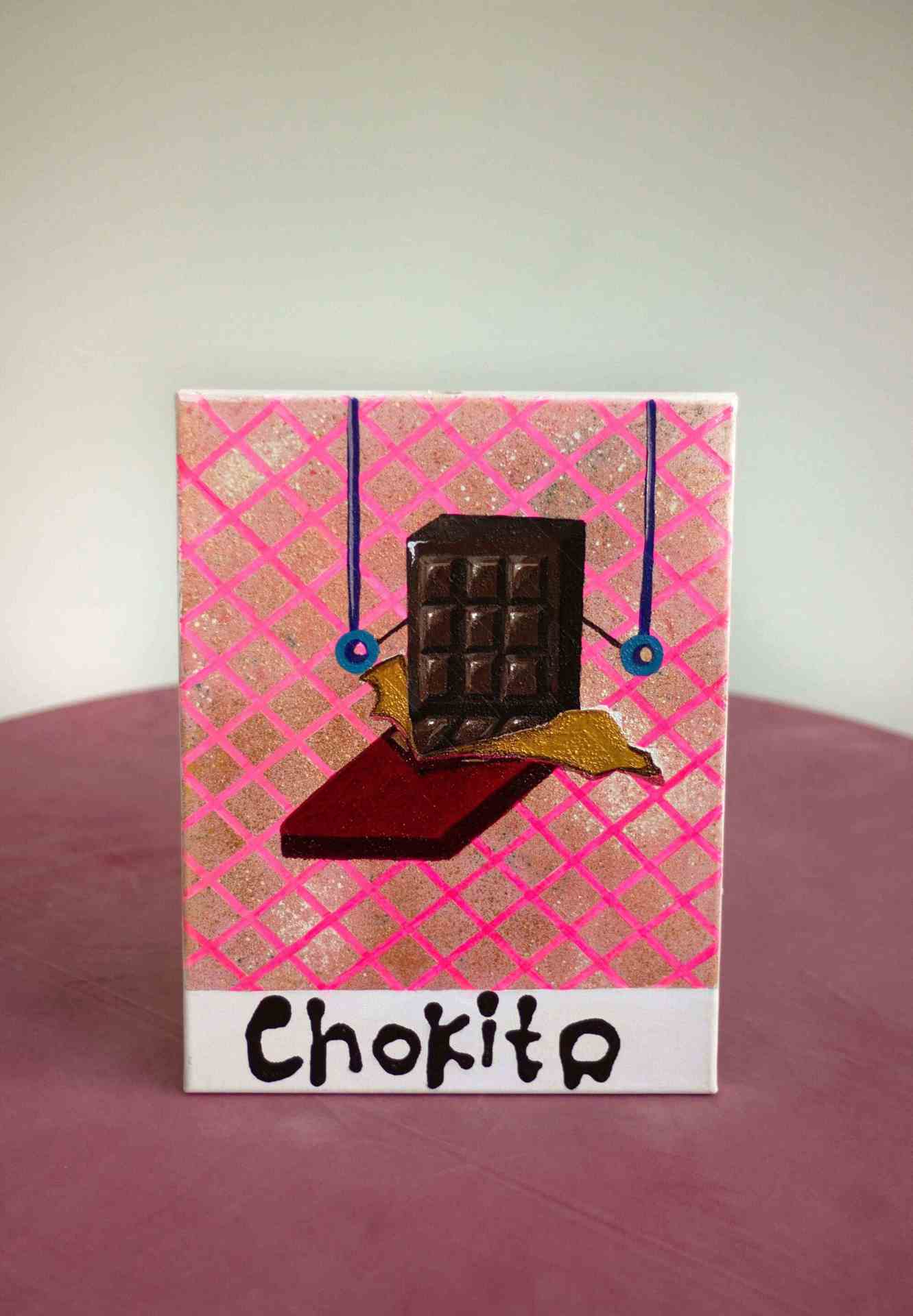 Работа из серии "Сладкий фитнес". Выполнена в авторской технике на хосте на подрамнике. Холст текстурный, посыпанный художественный пудрой, а имя персонажа подписано растекающейся краской, напоминающей сладкую глазурь. Яркая, юмористическая, аппетитная, уникальная иллюстрация о том, что во всем нужен баланс, и что на первый взгляд даже самые несочетаемые вещи могут отлично совмещаться друг с другом. Работа принесет юмор и позитив в любой интерьер, особенно кондитерских, пекарен, кафе и ресторанов, а также вашей кухни или любимого места в доме. Это отличный подарок для сладкоежек и любителей заниматься спортом. У каждого персонажа в серии есть имя, а вид спорта подобран под его особенности.