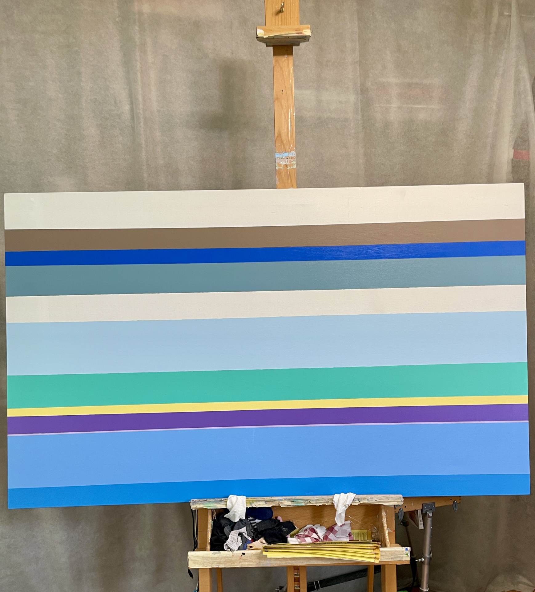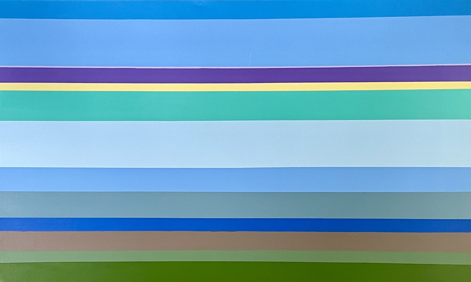 Картина выставлялась на коллективной выставке в московской галерее Artmaison 20 - 26 июня 2025 года. Название выставки "Мечты о Скандинавии". На вернисаже и 21-06-2025 на Сканди Фесте были искусствоведы и знатоки, жаль я в выставочной суматохе не записал их имён. Высказывания их сводятся к тому, что выставленная мной картина многозначная, глубокая, философская. На холсте дышат гармония, любовь, мечта, вдохновение. Те, кто знаком с моим творчеством, отмечали удачное решение в холодных тонах, хотя традиционно я яркий абстракционист в тёплой и даже горячей гамме. Специалисты говорили, что я открыл для себя новое направление: не просто абстрактный геометризм, а СИМВОЛИЧЕСКУЮ геометрическую абстракцию. Любящие Швецию отметили, что синий и желтый на картине напоминают сочетание цветов шведского флага. Знающие природу Швеции легко считывали символизм картины. Она делится на три части. Верхняя часть как бы небесная, средняя - морская, а нижняя - суша. Отмечали моё «попадание в цвет» именно скандинавской природы. Смотрим картину сверху вниз. Небо над наблюдателем обычно темнее, чем небо ближе к горизонту, и две верхние полосы это передают. Закаты в Скандинавии обычно сдержанные по палитре, чаще с сиреневым и желтым, чем с оранжевым и тем более красным, об этом неширокая и тонкая линии. Море в Скандинавии часто принимает лазурный цвет, это следующая полоса. Если смотреть вдаль, то северное море как бы выбеленное, это передаёт светло-голубая полоса. Ближе к наблюдателю цвет воды насыщенный, это следующая полоса. Переходим к суше. Серая полоса символизирует прибрежные камни. Синяя полоса обозначивает цвет шведских рек. Коричневая полоса символизирует почву. Изумрудная полоса соответствует траве, а зеленая - лесу.
