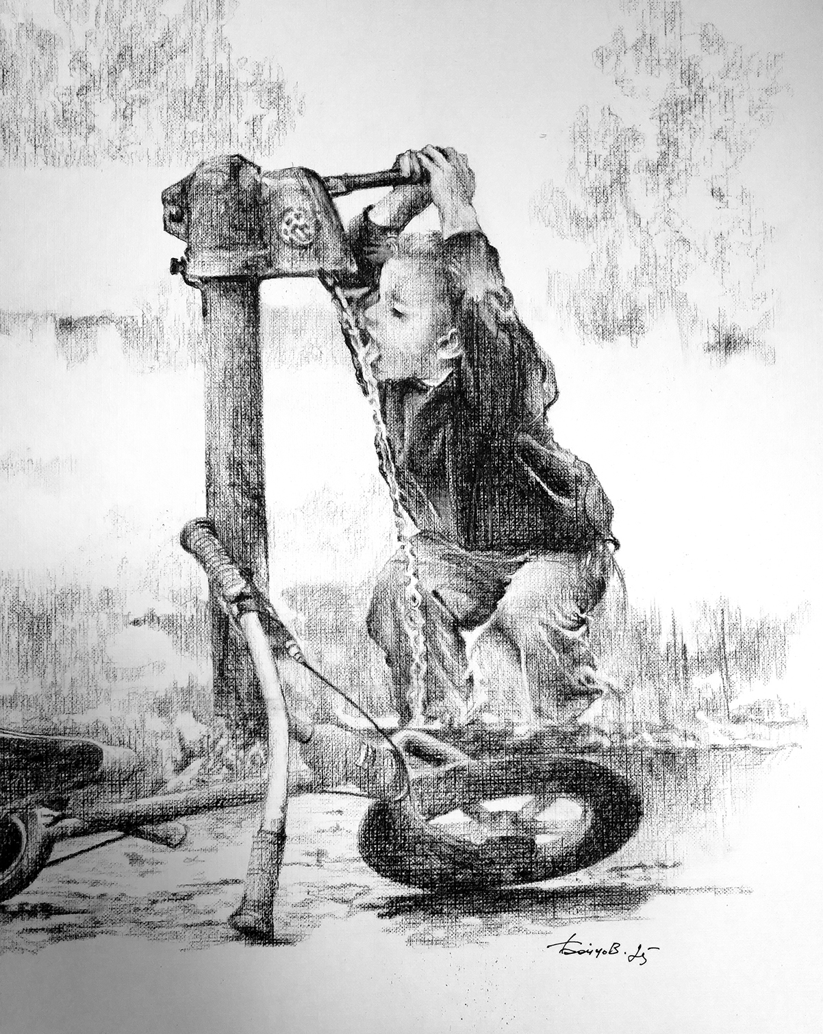2025 © A. Бойцов 42 х 42 см. Уголь на бумаге. Работа подписана автором. Рисунок обработан графическим закрепителем. Дополнительная конструкция отсутствует.