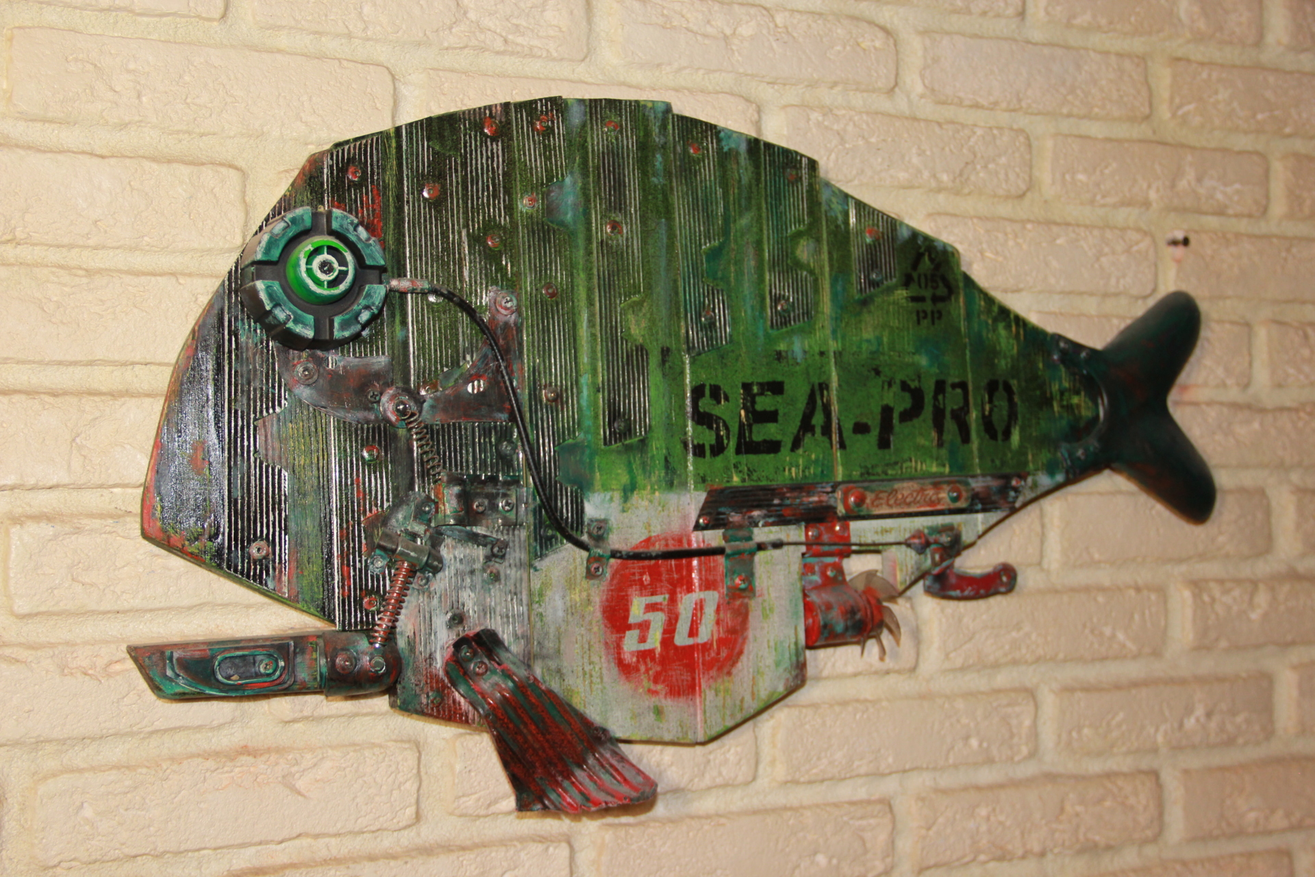 Fish № 50 Sea-pro Автор: Hakaro. Материал: дерево, металл, пластик. Имеет крепление на стену.