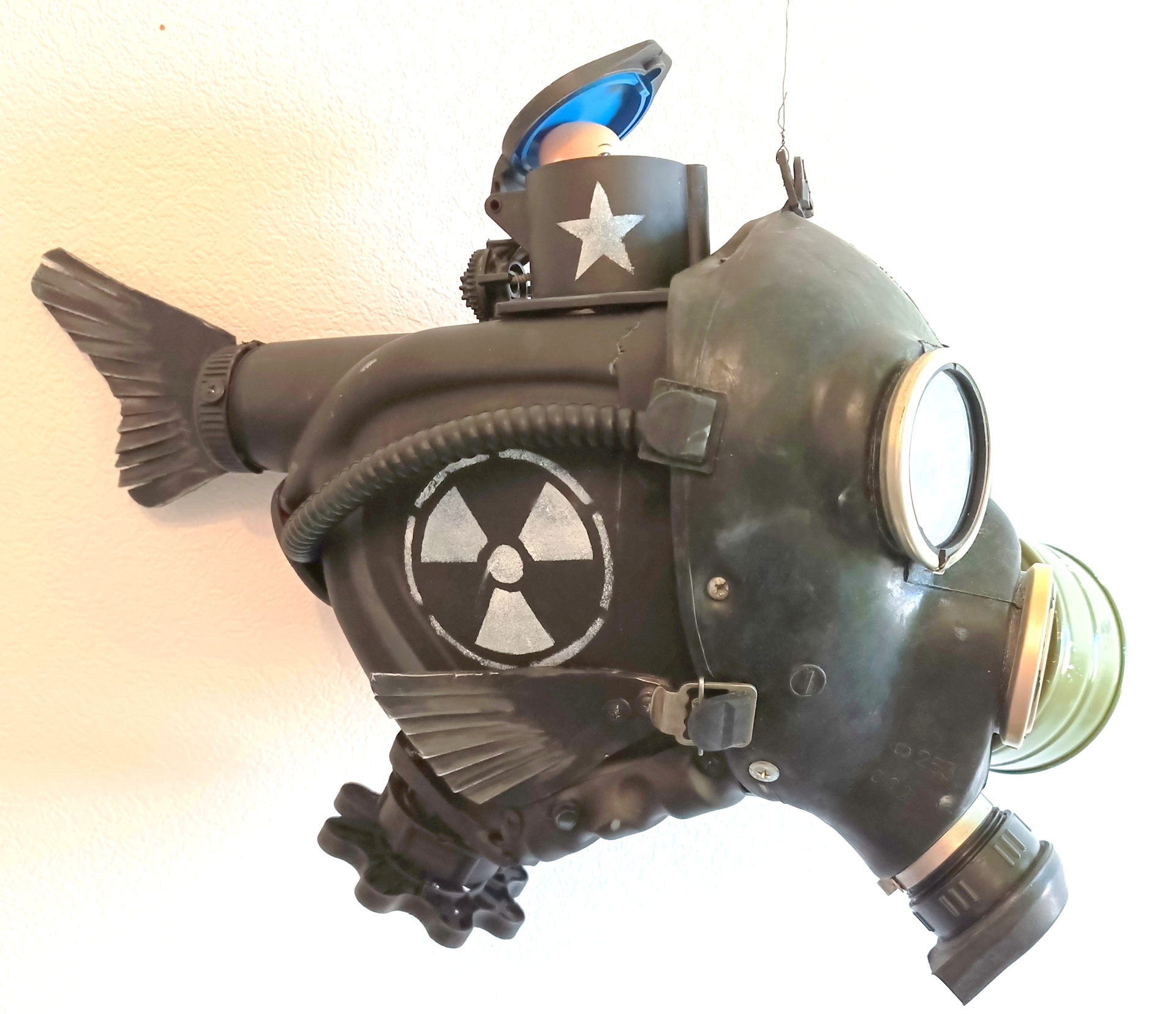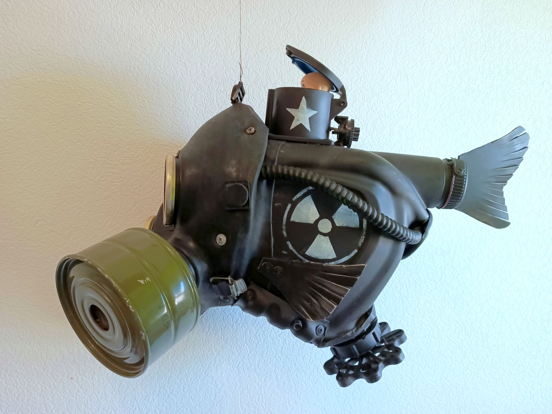 Рыба Припять ( В память о Чернобыле) Автор: Hakaro Материал: пластик, металл, резина, стекло Hakaro — современный российский художник. Недавно он заинтересовался новой тенденцией в современном искусстве под названием апсайклинг (от англ. «upcycling» т.е. вторичное использование материалов и вещей и приданием им новой функциональности.которое включает в себя превращение старых, устаревших товаров в новые предметы искусства. Апсайклинг как способ создания произведений искусства — это в первую очередь альтернатива традиционным формам искусства. Современное общество пристрастилось к потребительству, не подозревая о том, что ресурсы планеты конечны. Концепция Hakaro заключается в том, что из предметов, которые по разным причинам не перерабатываются, можно создавать произведения искусства, давая им вторую жизнь и превращая их в функциональное изделие, предмет декора в современном интерьере.