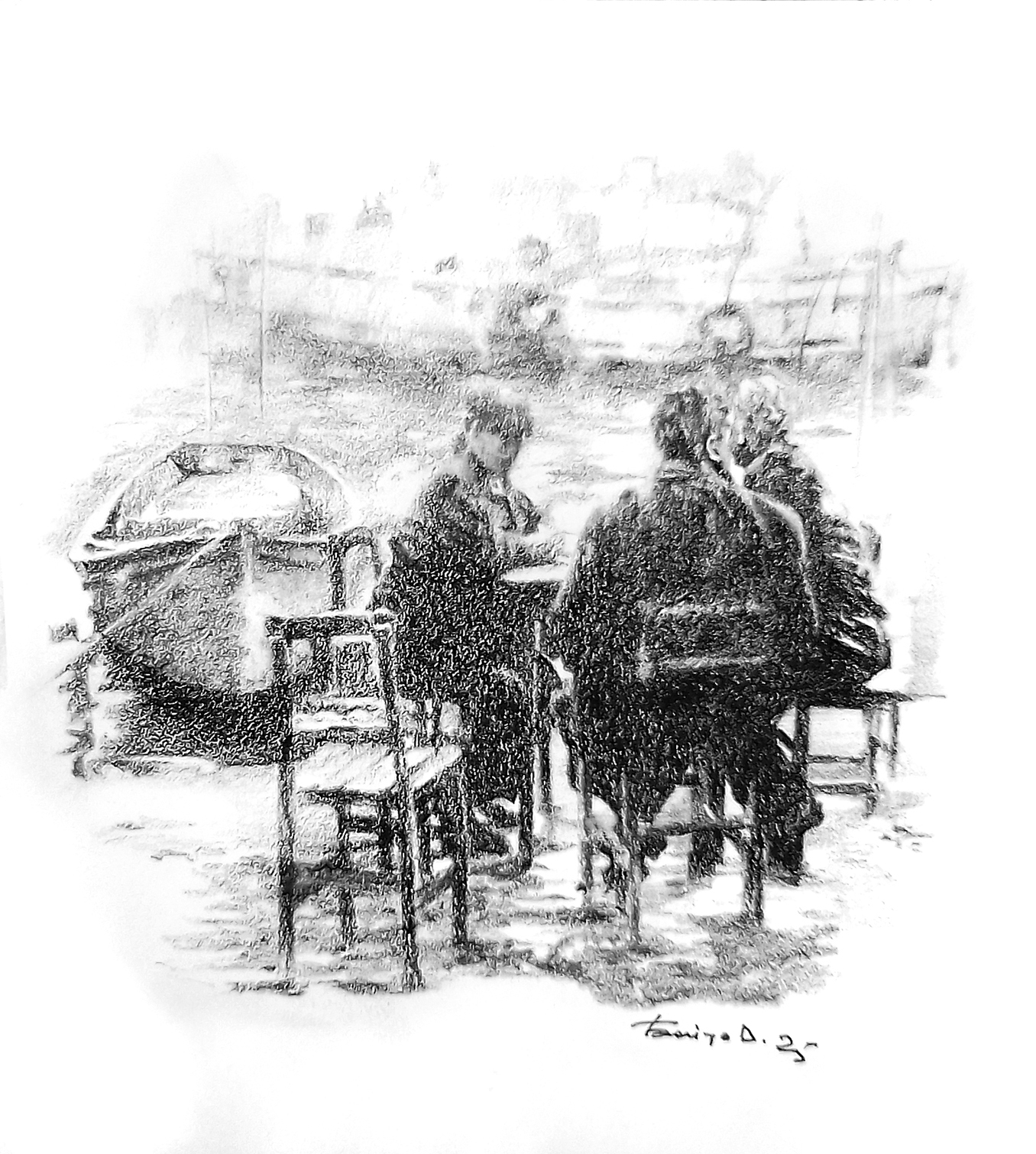 2025 © A. Бойцов 28 х 25 см. Уголь на бумаге. Работа подписана автором. Рисунок обработан графическим закрепителем. Дополнительная конструкция отсутствует.