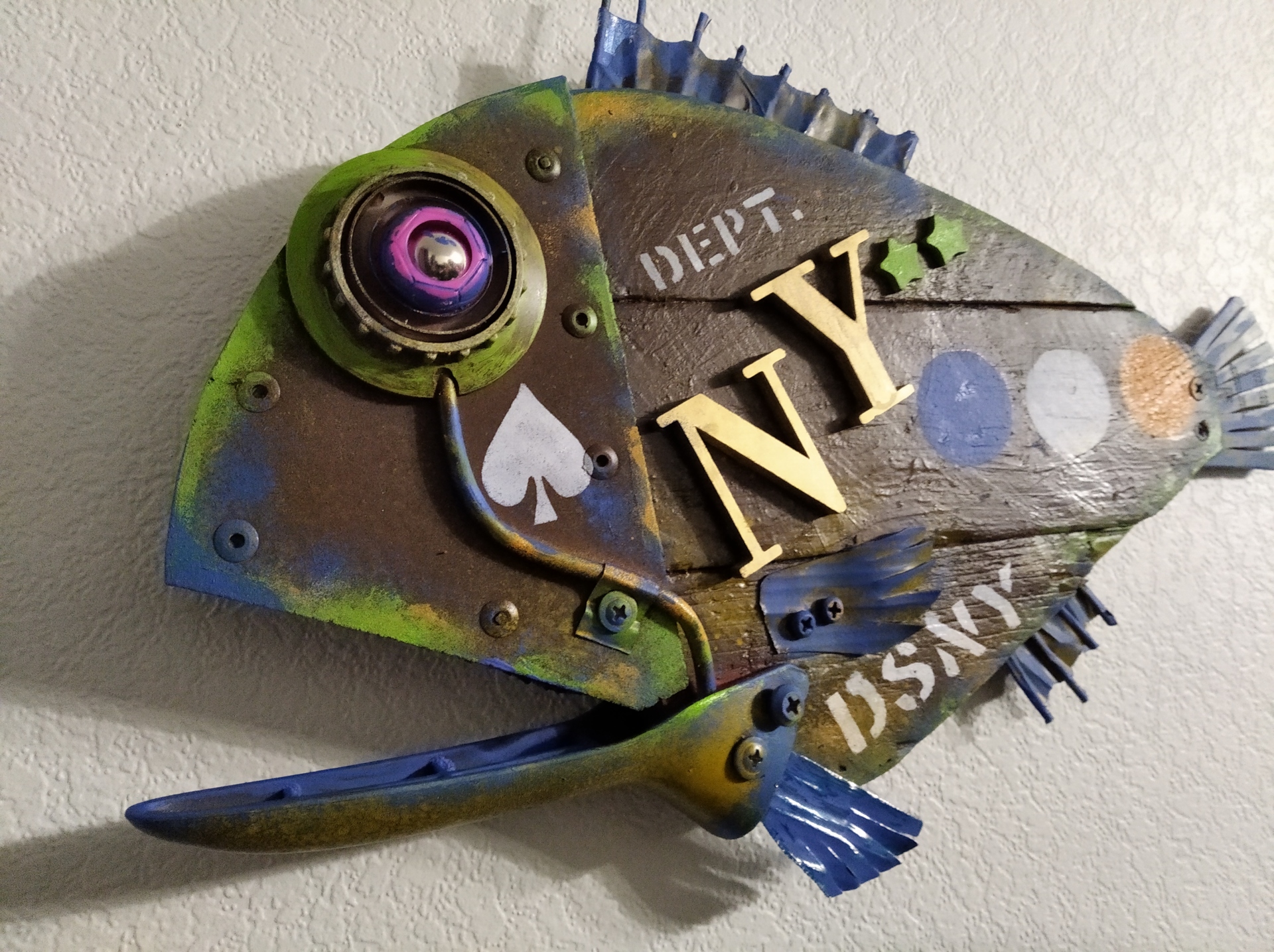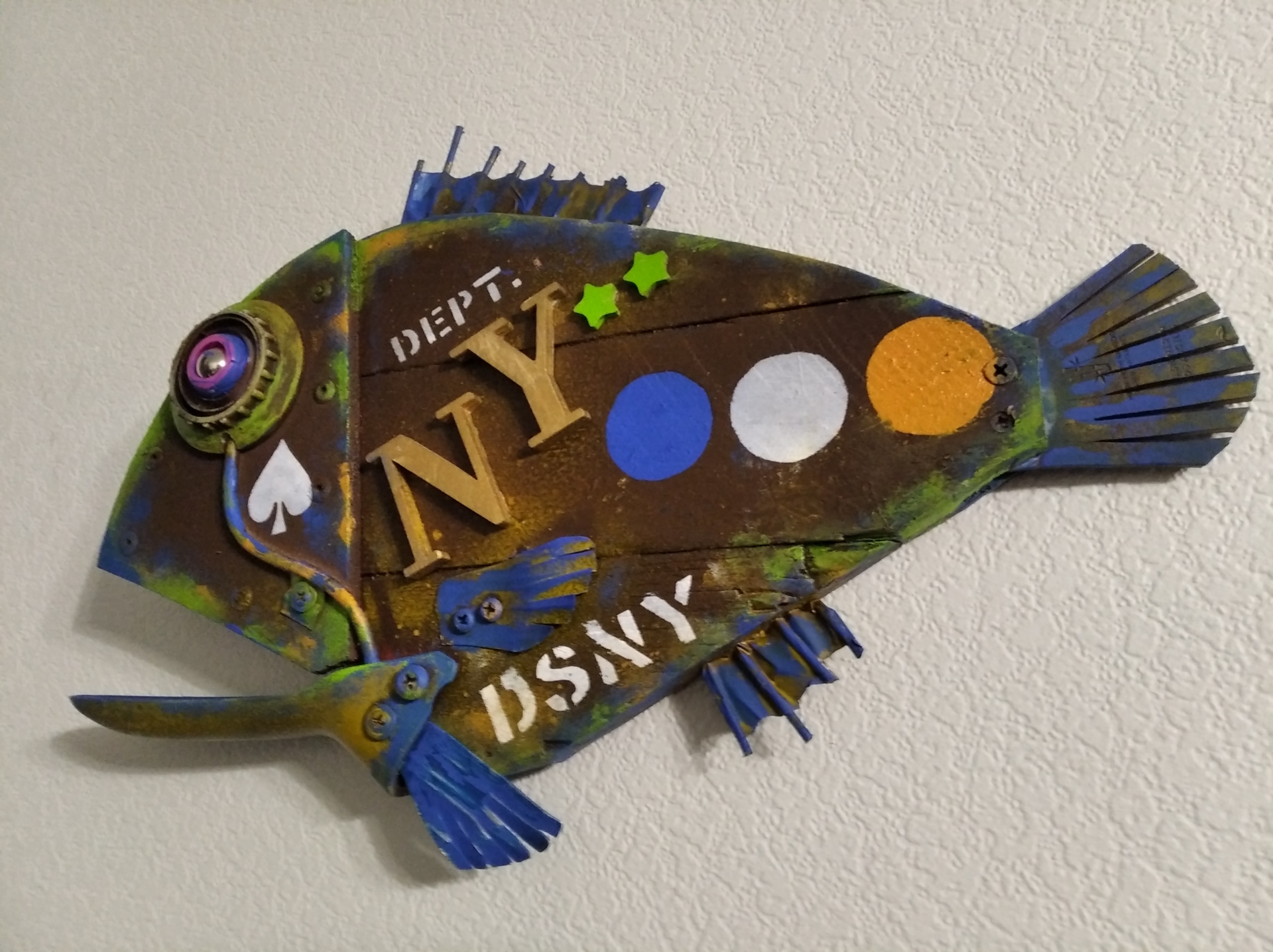 Рыба DSNY ( New York Department of Sanitation) Автор: Hakaro Материал: дерево, металл, пластик