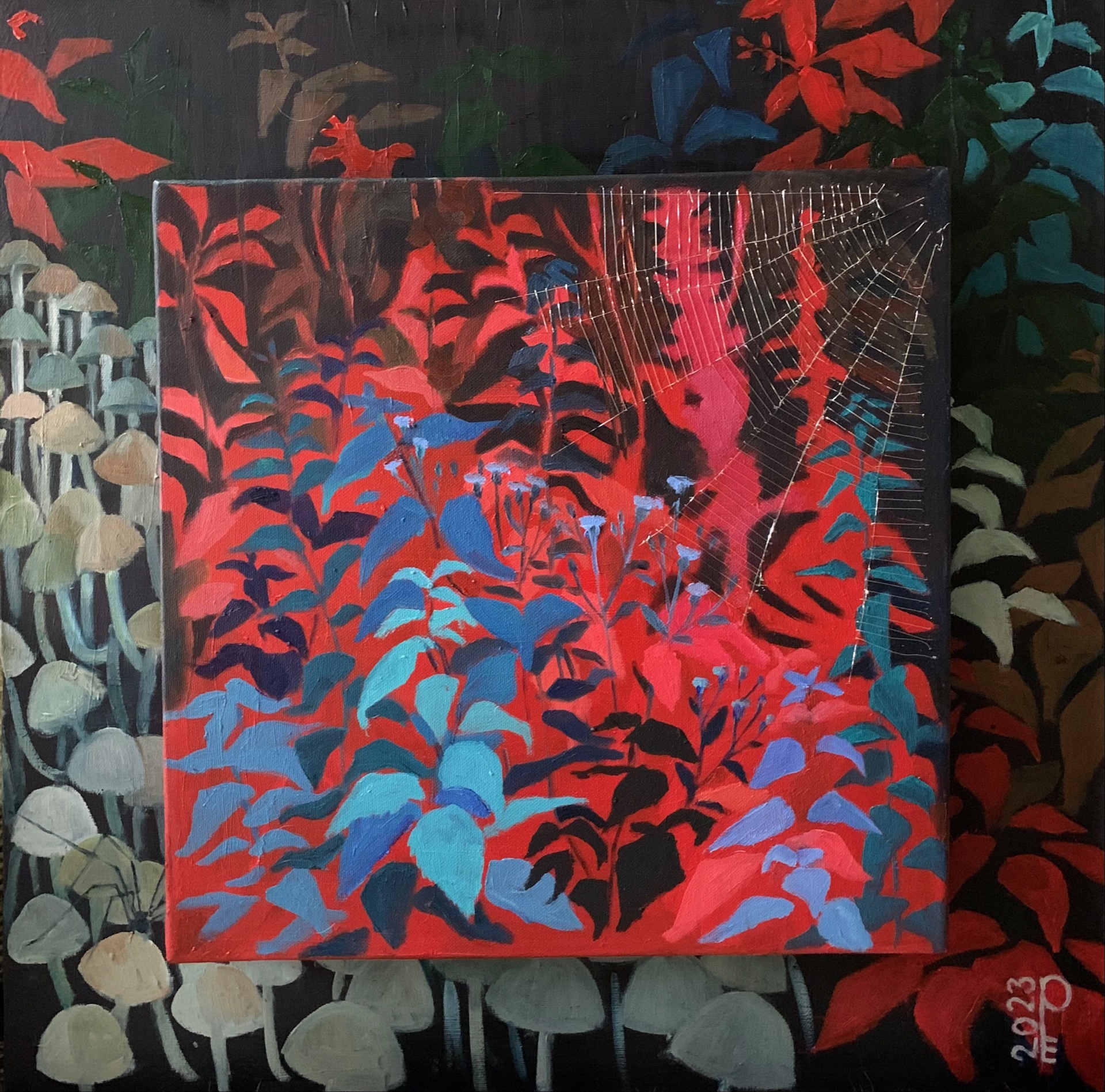 Картина выполнена на двух подрамниках, наложенных друг на друга (внутренний 40х40). Таким образом создается иллюзия приближенного изображения, как сквозь лупу