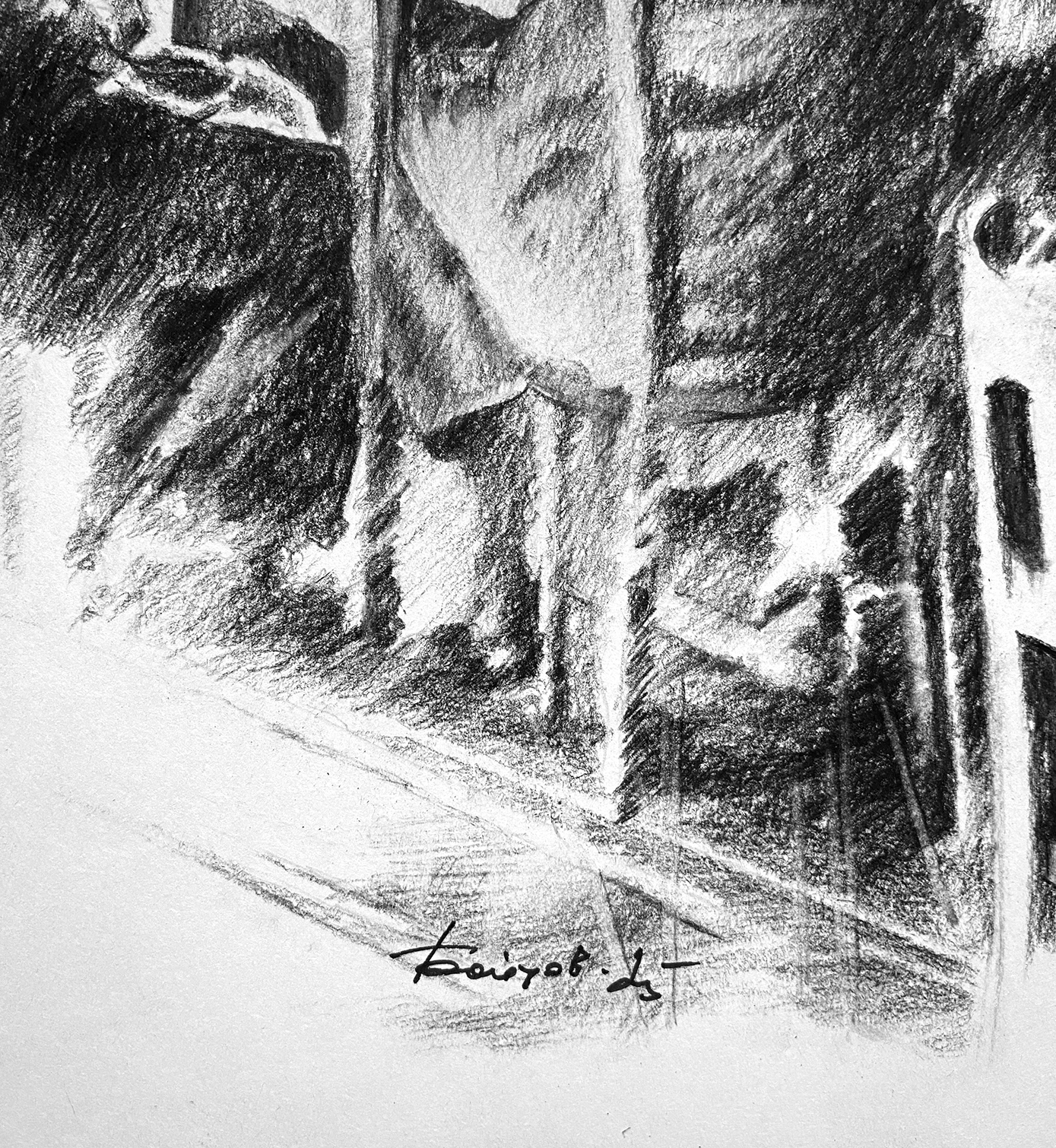 2025 © A. Бойцов 33 х 33 см. Уголь на бумаге. Работа подписана автором. Рисунок обработан графическим закрепителем. Дополнительная конструкция отсутствует.