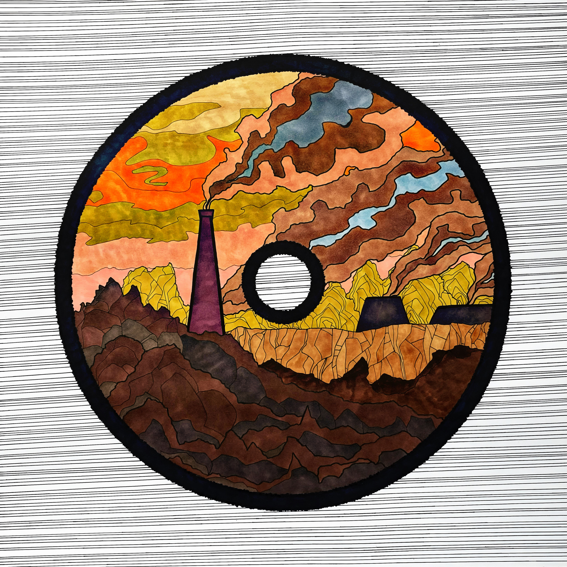 В работе Цветная графика с пейзажем Завод Промышленность