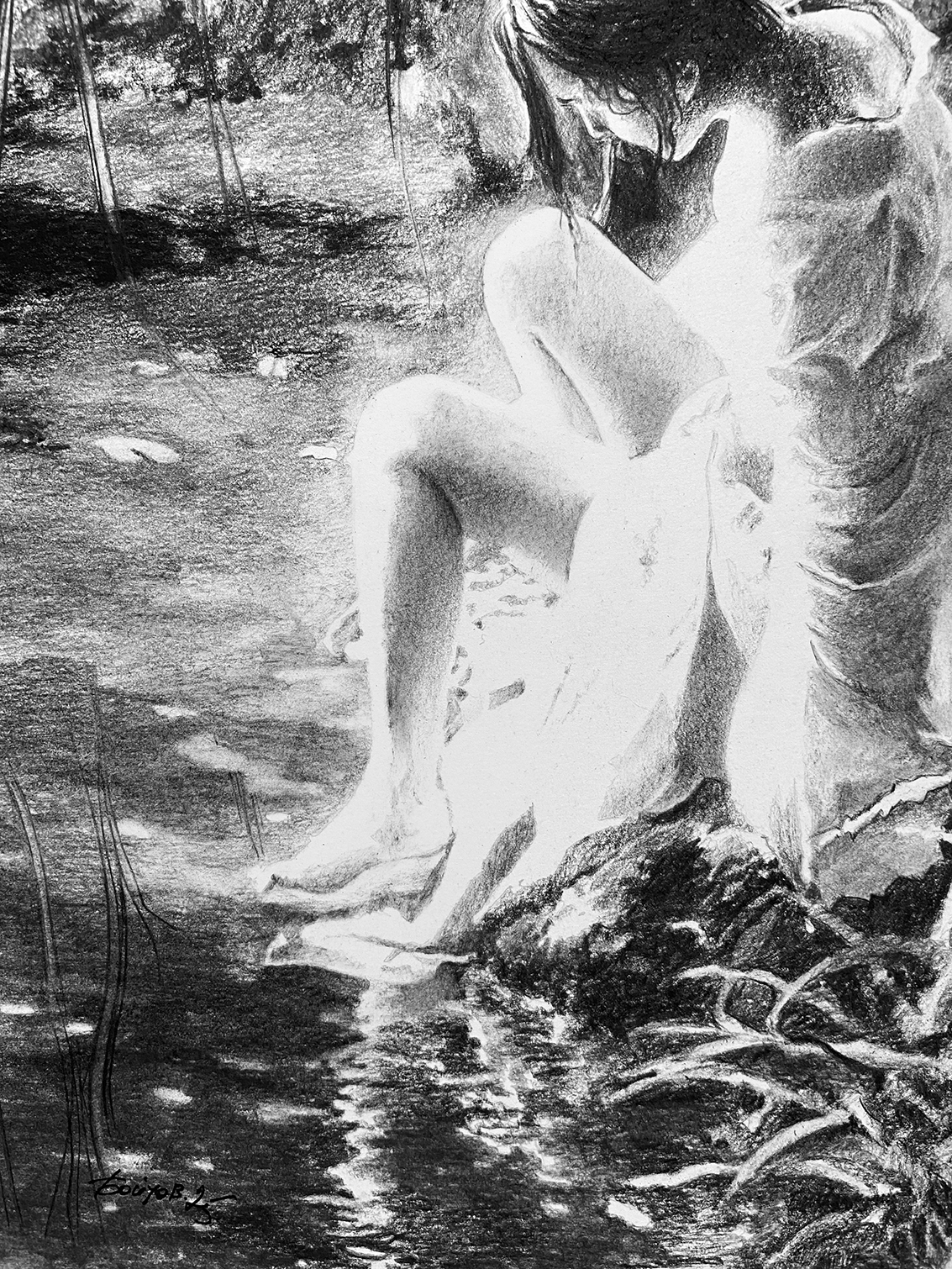 2025 © A. Бойцов 42 х 34 см. Уголь на бумаге. Работа подписана автором. Рисунок обработан графическим закрепителем. Дополнительная конструкция отсутствует.