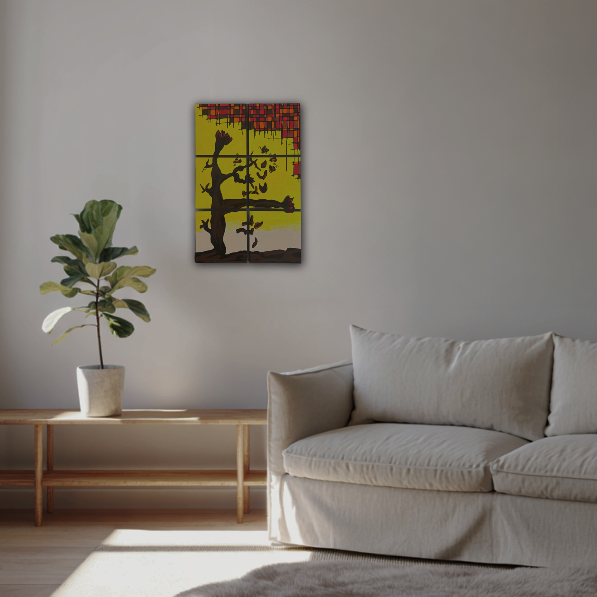 Модульная картина ”Closing” - шестисекционная картина, выполненная на плитах из МДФ, станет изысканным акцентом в Вашем интерьере. На полотне изображен цветок, засыпающий в последние теплые дни осени. Работа написана акриловыми красками в уютной, теплой цветовой гамме, что создает спокойную и меланхоличную атмосферу. Картина идеально подойдет для спальни, гостиной или кабинета, добавляя пространству глубины и художественной завершенности. Она гармонично впишется в современный, скандинавский или минималистичный стиль интерьера. Особенности: · Состоит из 6 модулей размером 20х20 см каждый. · Торцы окрашены в черный цвет для законченного вида. · Покрыта защитным лаком для долговечности. · Готова к монтажу двусторонним скотчем или клеем.