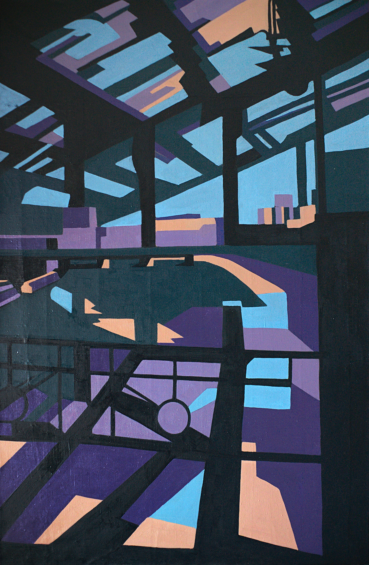 «Мост» — это взгляд на город сквозь призму света, геометрии и движения. Картина раскрывает архитектурное пространство как живую структуру, где пересечения линий и цветовые плоскости создают ощущение динамики и глубины. Холодные оттенки синего и фиолетового мягко сочетаются с тёплыми розовыми акцентами, наполняя композицию атмосферой раннего утра или позднего заката. «Мост» будто приглашает зрителя пройти по невидимой траектории — от теней под конструкциями к открытому горизонту, к пространству возможностей. Это произведение об объединении: разных уровней, разных взглядов, разных состояний. Оно идеально подходит для интерьеров, где ценят современную эстетику, архитектурные мотивы и чистую силу визуальной формы. Эта картина станет выразительным центром любой коллекции, привнося в пространство ощущение масштаба, прозрачности и урбанистической поэзии.