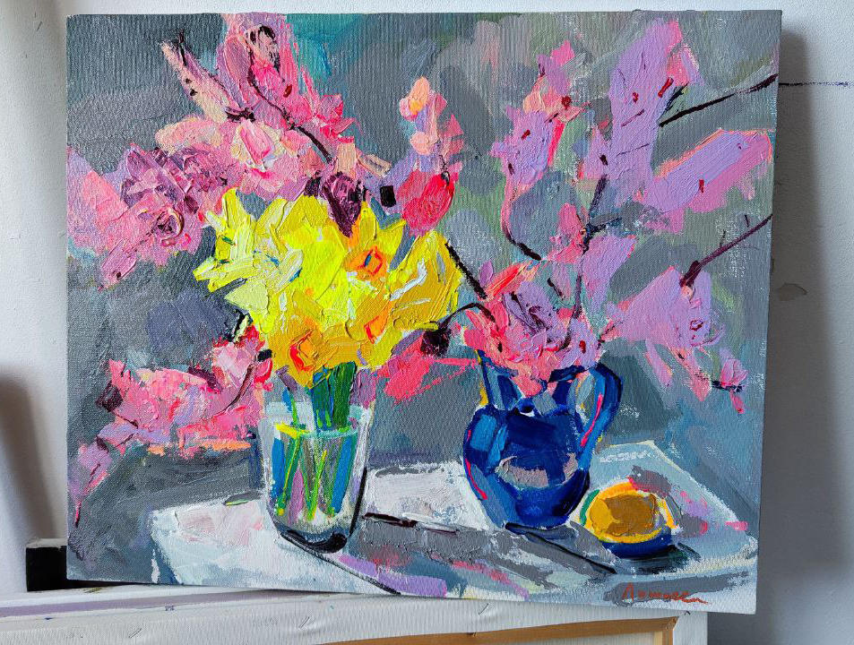 Работа написана с натуры на пленэре в Судаке. Нарциссы и ветви цветущей сливы. Яркая, контрастная работа. Цвет и свет.