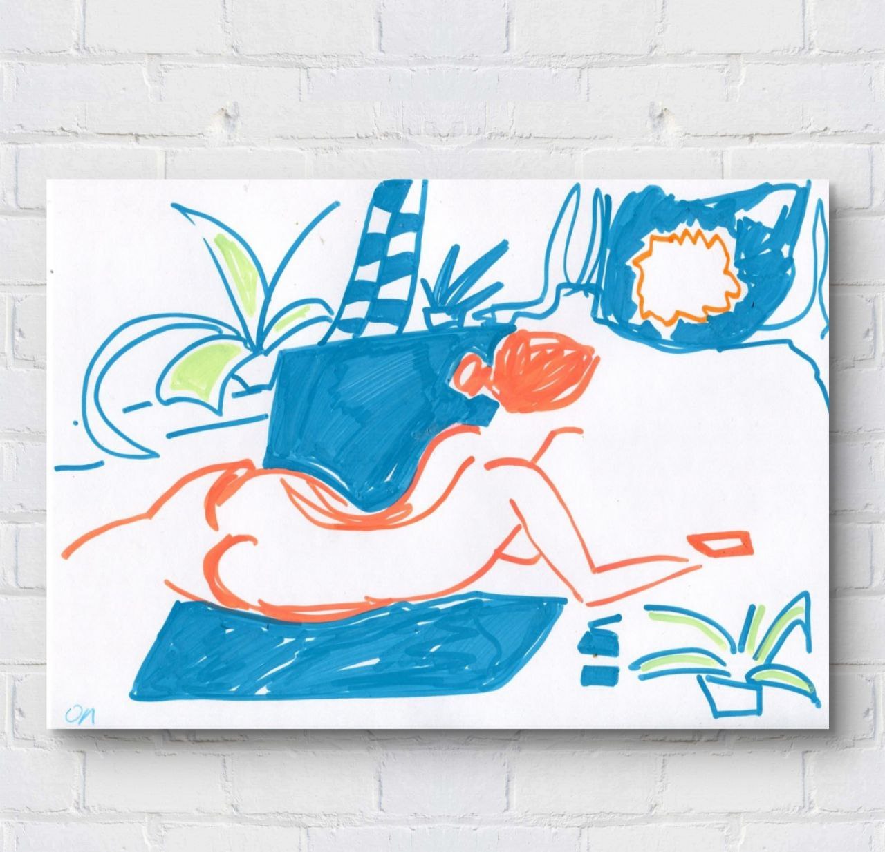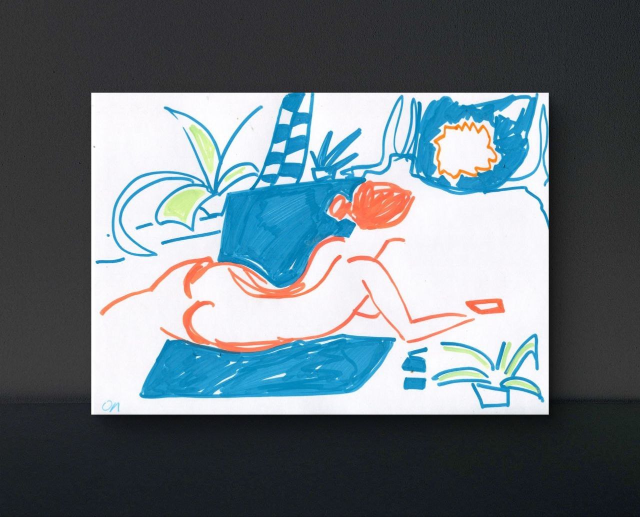 Работа из серии "Одна". Акриловые маркеры на бумаге.