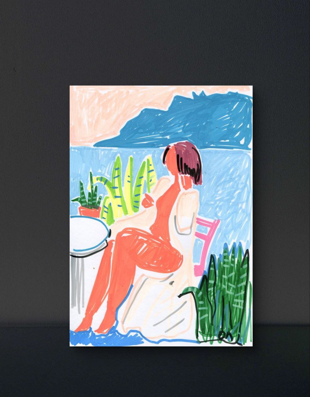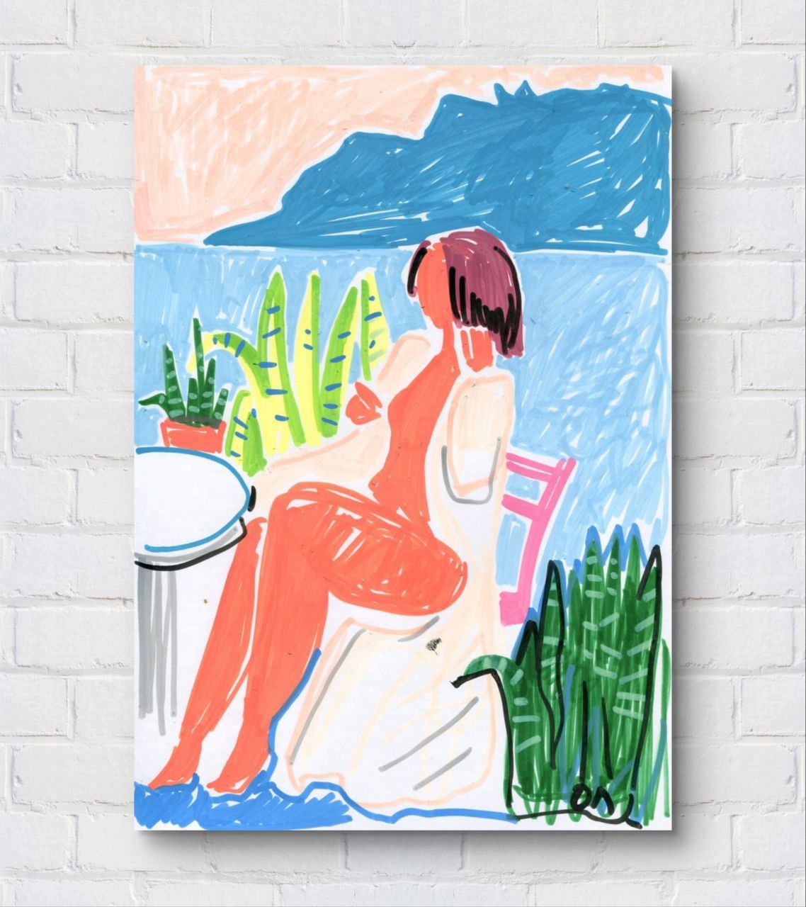 Работа из серии "Одна". Акриловые линеры и цветные карандаши на бумаге для графики.