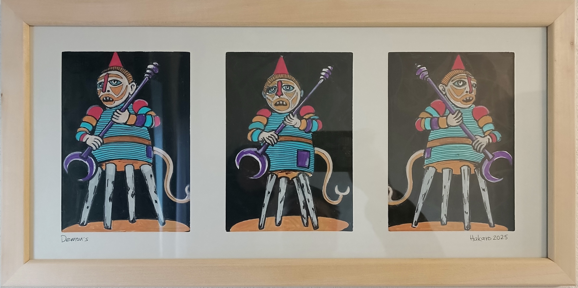Demons. Материал: обои Aura, акрил. Размер: 24см х 50 см.Работа в раме под стеклом. Многие из нас в детстве любили рисовать на обоях)) Родители ругались видя это, и у кого-то пропадало это желание, а кто-то продолжал и стал художником)). Я небогатый человек, и иногда у меня нет хорошей бумаги для рисования. Случайно в мои руки попал каталог с образцами обоев Aura. Великолепные обои! Относительно молодой бренд был основан в 1975 году и принадлежит известной канадской компании Norwall, которая специализируется на создании обоев высокого класса. Я решил вспомнить свое детство и попробовать рисовать на обоях Aura...