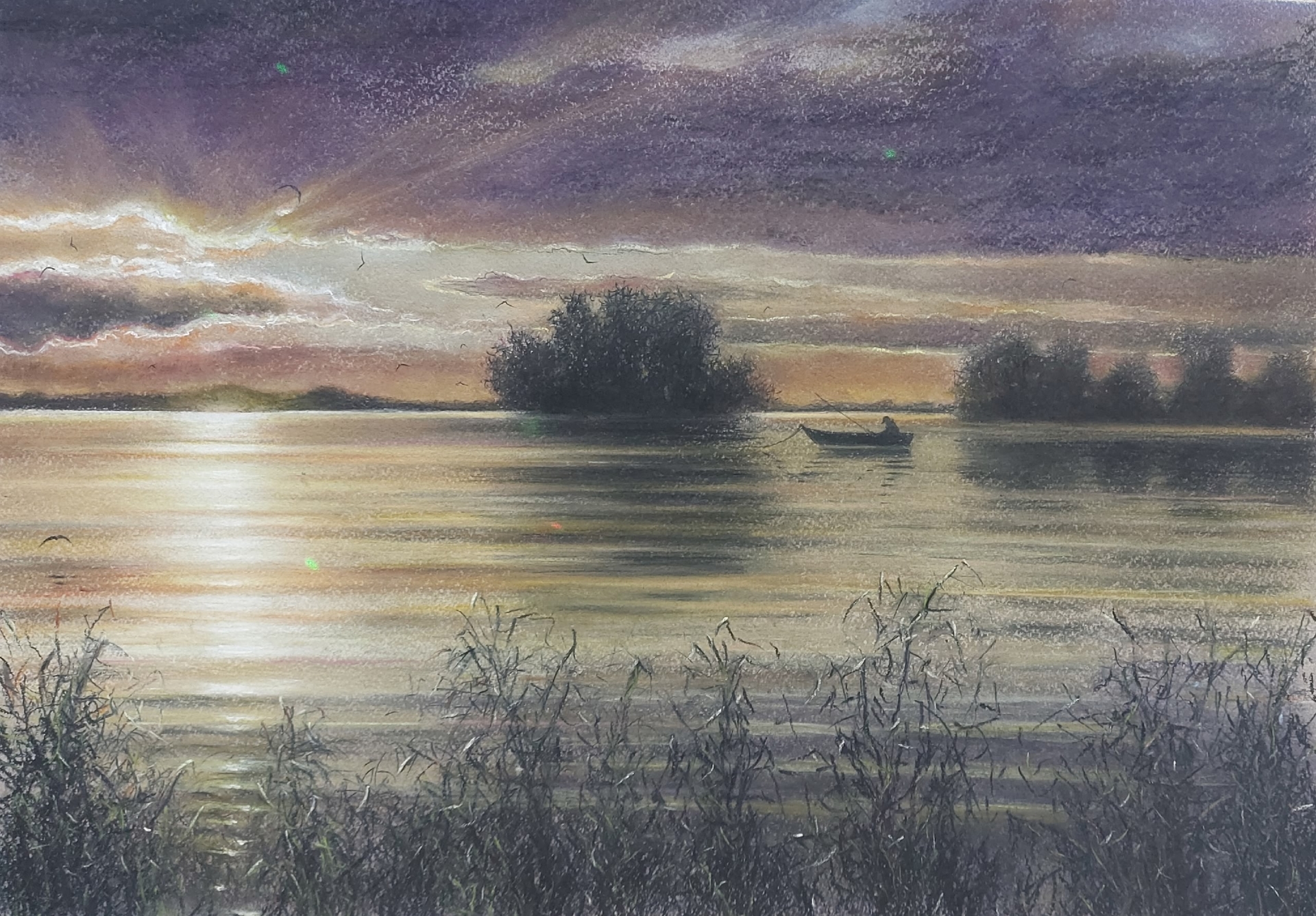 Как часто мы остаёмся наеде с собой? Сюжет картины нас направляет углубиться в всю идентичность, побыть внутри себя и поймать лёгкий кайф от состояния спокойствия и уравновешенности. Вдохновляющий вечерний пейзаж, размером 42х58 см. написан профессиональными материалами - сухой пастелью на бумаге в реалистическом исполнении, закреплён фиксативом для сохранения красочного слоя на долгие века. Украсит любой интерьер, и станет его центральной частью. Картина участвовала в коллективной выставки проекта галереи "Современник", и оформлена в красивую раму (багет), что визуально подчёркивает завершённость произведения.