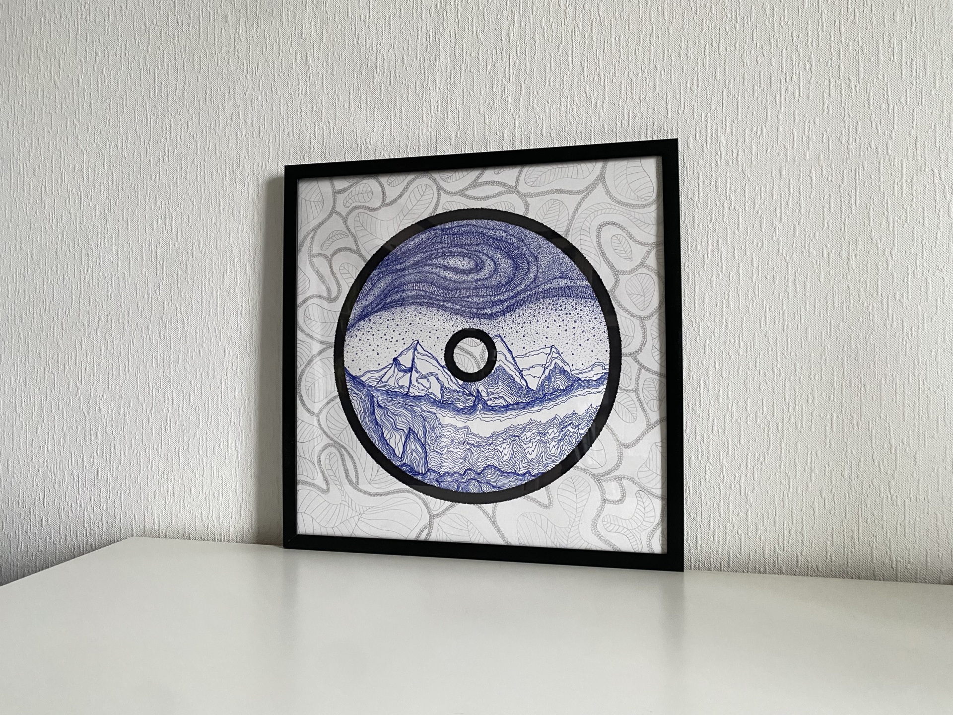 Альбом включает четыре графические работы, выполненные в технике рисования линиями и точками исключительно линером. Цветовая гамма - сдержанная, холодная, построенная на оттенках белого и синего. 1. Заснеженный горный пейзаж, освещенный всполохами северного сияния. 2. Энергичная вершина, пронзенная разрядом молнии. 3. Таинственный сюжет в фантастических космических глубинах. 4. Монументальный остроугольный кристалл, напоминающий инопланетный артефакт. Рекомендация по интерьерам: Данная серия пластинок будет гармонично смотреться в интерьерах, где ценится современность, лаконичность и концептуальность. Это отличный выбор для: · Минималистичных пространств, где нужен четкий графичный акцент. · Индустриальных лофтов, где холодная палитра перекликается с металлом и бетоном. · Скандинавских гостиных, поддерживая эстетику света и просторы. · Кабинетов или офисов в стиле модерн или хай-тек, добавляя им интеллектуальной глубины и динамики. Альбом ”Indigo”, выпущенный в 2024 году, впервые в масштабном формате. Настоятельно рекомендую к просмотру!