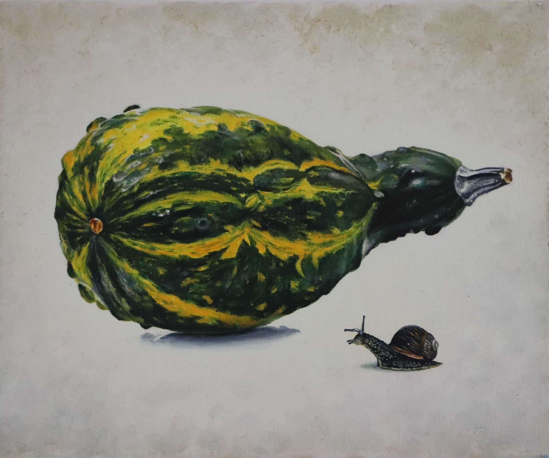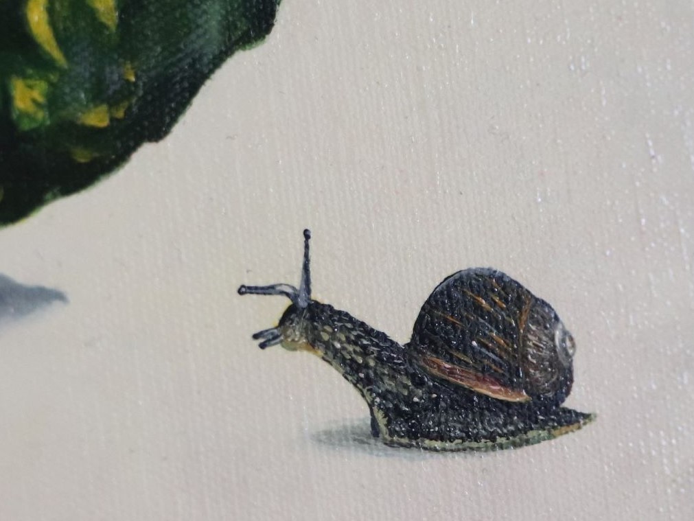 Улитку муж нашёл в траве в мае у дома, мы тогда жили в Истре. Их очень много было в это время разных размеров и форм. Попалась видимо самая фотогеничная, потому что позировала очень убедительно, как будто всю жизнь работала фотомоделью. В работе есть определённая философия, так как невозможно ваять просто так что-то, не замышляя в образах смысл. Но каждый зритель увидит свой смысл.