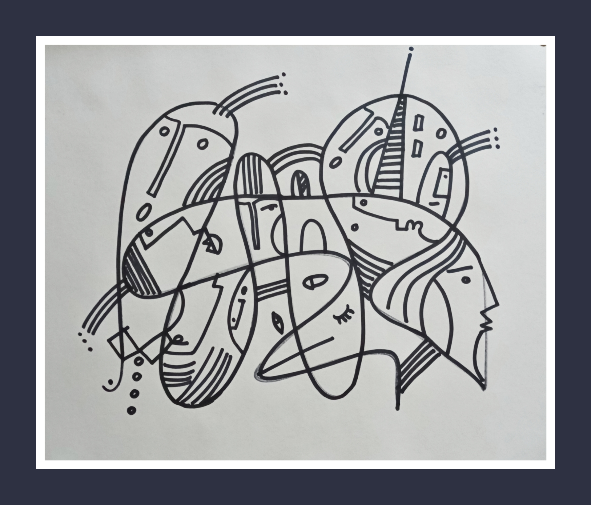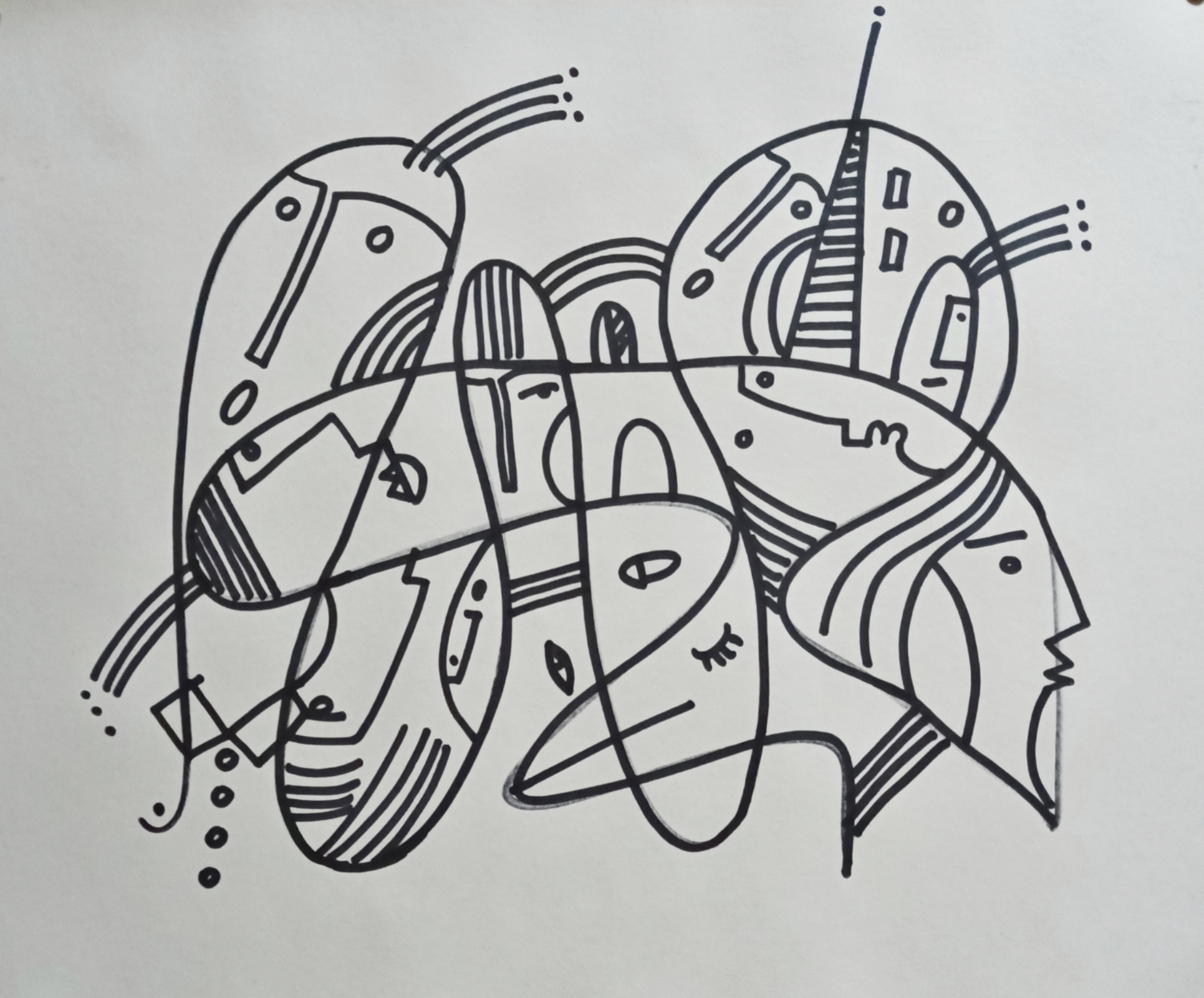 Работа выполнена без предварительного эскиза, способом потоковой импровизации.