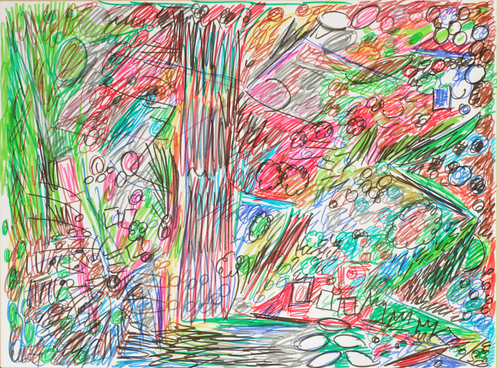 Работа исполнена в стиле Абстрактного экспрессионизма, на бумаге фломастерами.