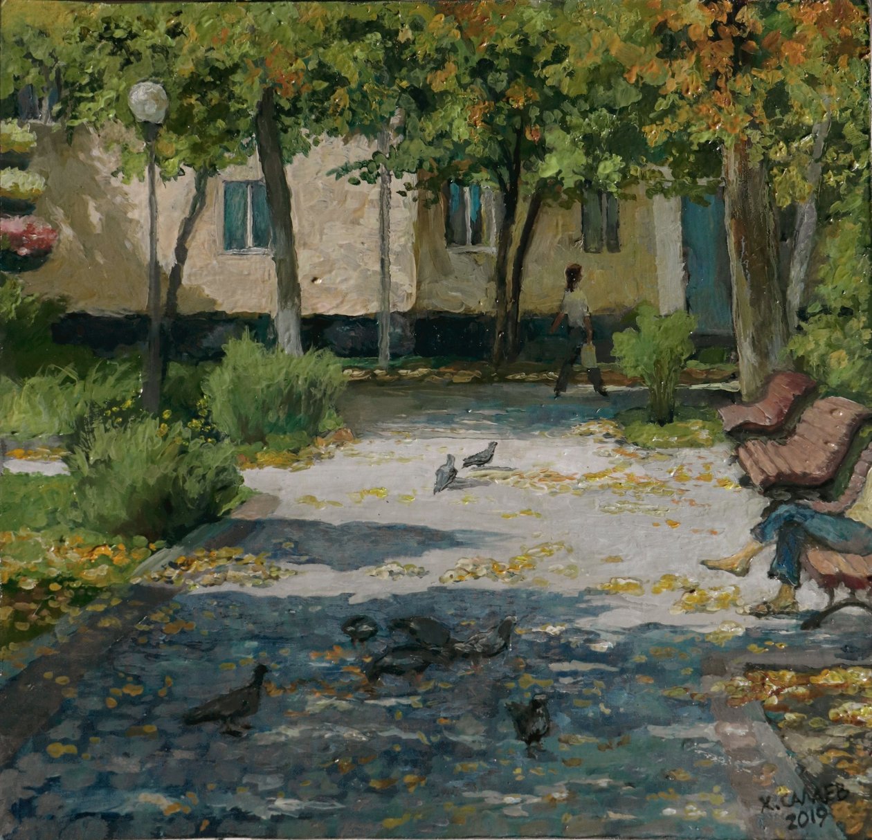 Халыг Салаев "Тёплый сентябрь" картон/масло 26x25 2019 г.