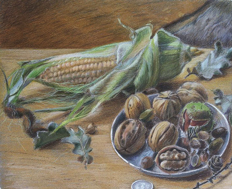 Натюрморт с орехами и кукурузой
