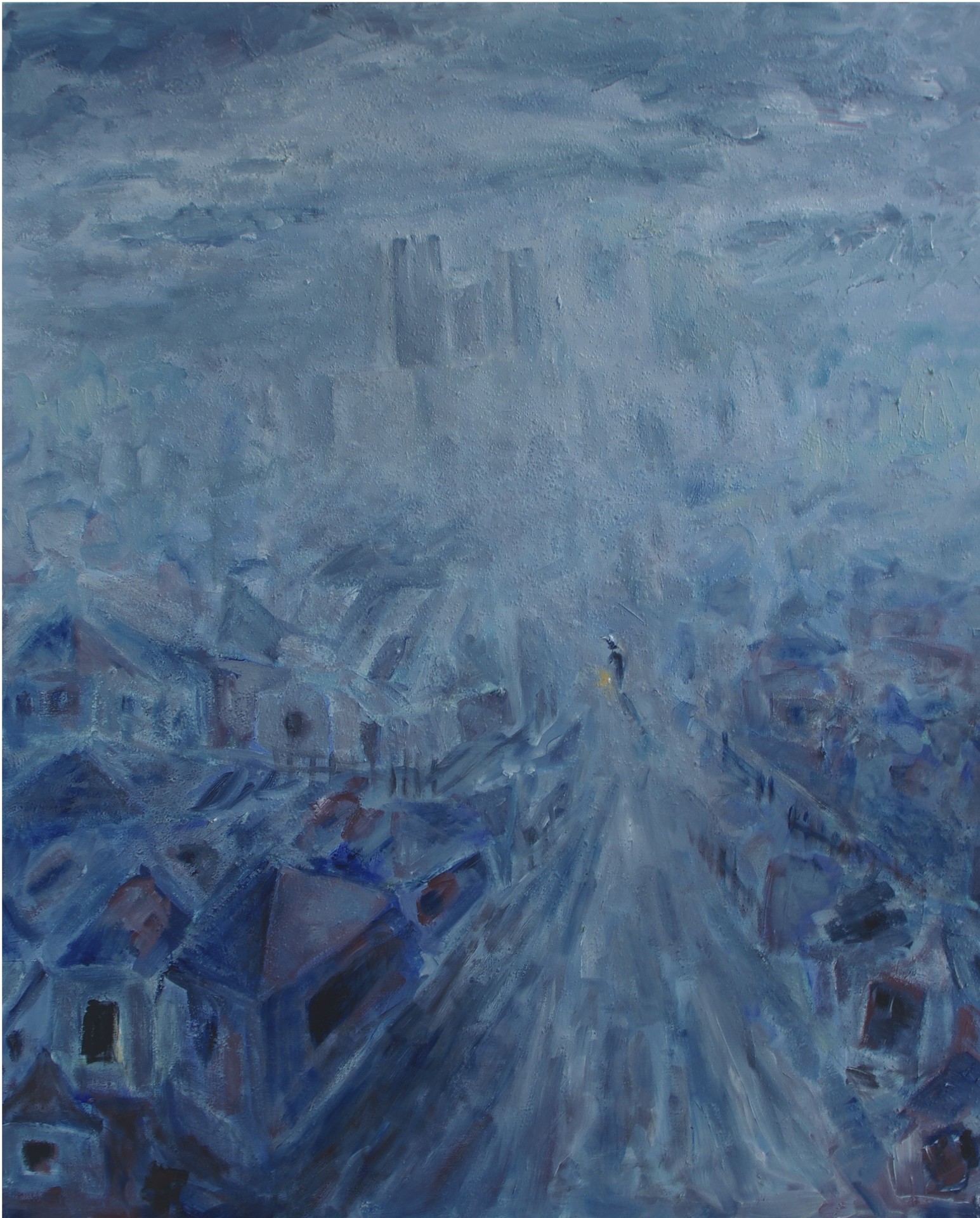 Картина посвящена произведению Франца Кафки "Замок". Льняной мелкозернистый холст , масляные краски Winsor & Newton Artists.