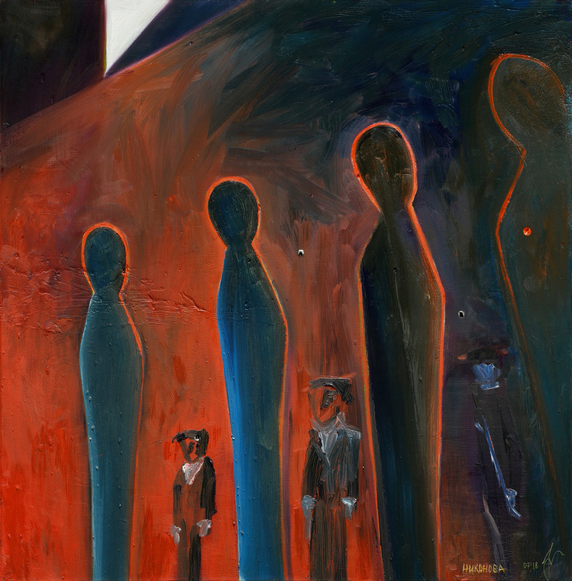 Картина посвящена жертвам репрессий и красного террора проводимыми органами НКВД и ЧК в 20-30-х годах 20 века в СССР. При создании произведения завершающим этапом было нанесение на полотно трех пулевых отверстий из боевого пистолета «Glock» для более полного и глубокого отражения событий того страшного времени. Льняной мелкозернистый холст , масляные краски Maimeri Artists.