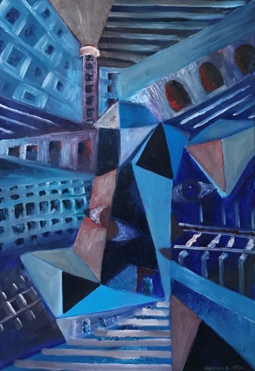 Индустриальный, холодный, мрачный. Он полон упадка и разложения. Он – источник жизни и процветания. Он разобщает и объединяет. Он был до нас и будет после. Город со своей историей и наследием, вечно чужой и единственно родной. Льняной мелкозернистый холст , масляные краски Maimeri Artists.