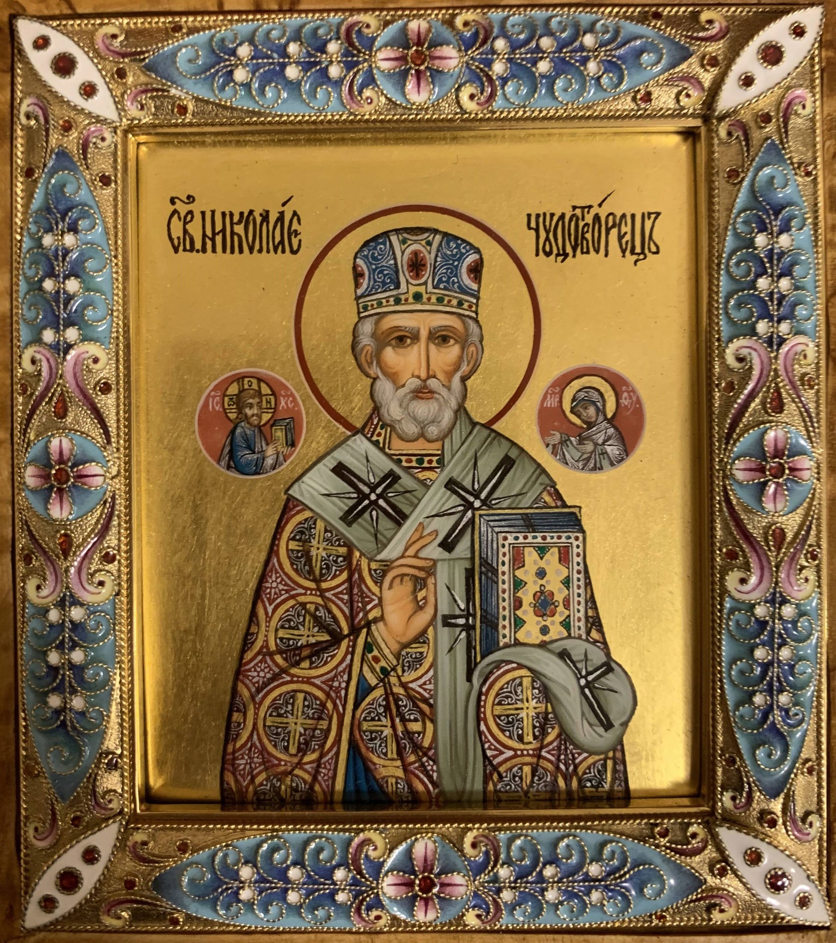 Настольная икона в серебряном окладе. Святой Николай Чудотворец