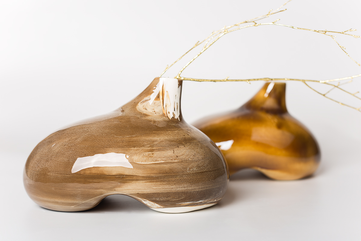Ваза необычной формы капли, которая вот-вот утечет. Ваза очень тактильная, хочется трогать и держать в руках. В ближайшее время будут в других цветах. Мы просили наших подписчиков помочь нам с названием. Родилась отличная ассоциация: есть похожие горы в национальном парке Арчес в Юте.
