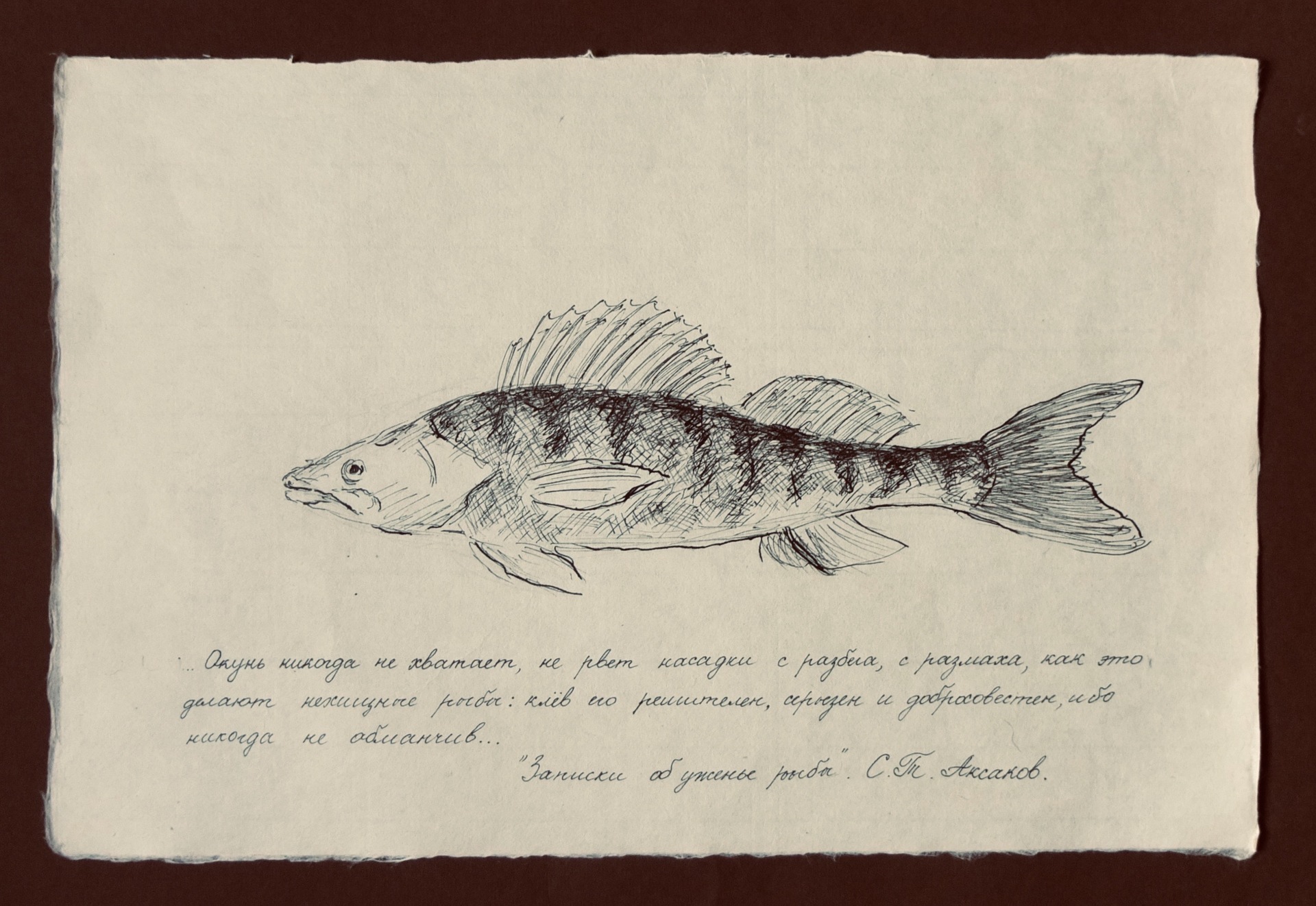 Серия "Записки об уженье рыбы". С.Т.Аксаков. На листе -текст -цитата из произведения. Бумага "рисовая", Япония