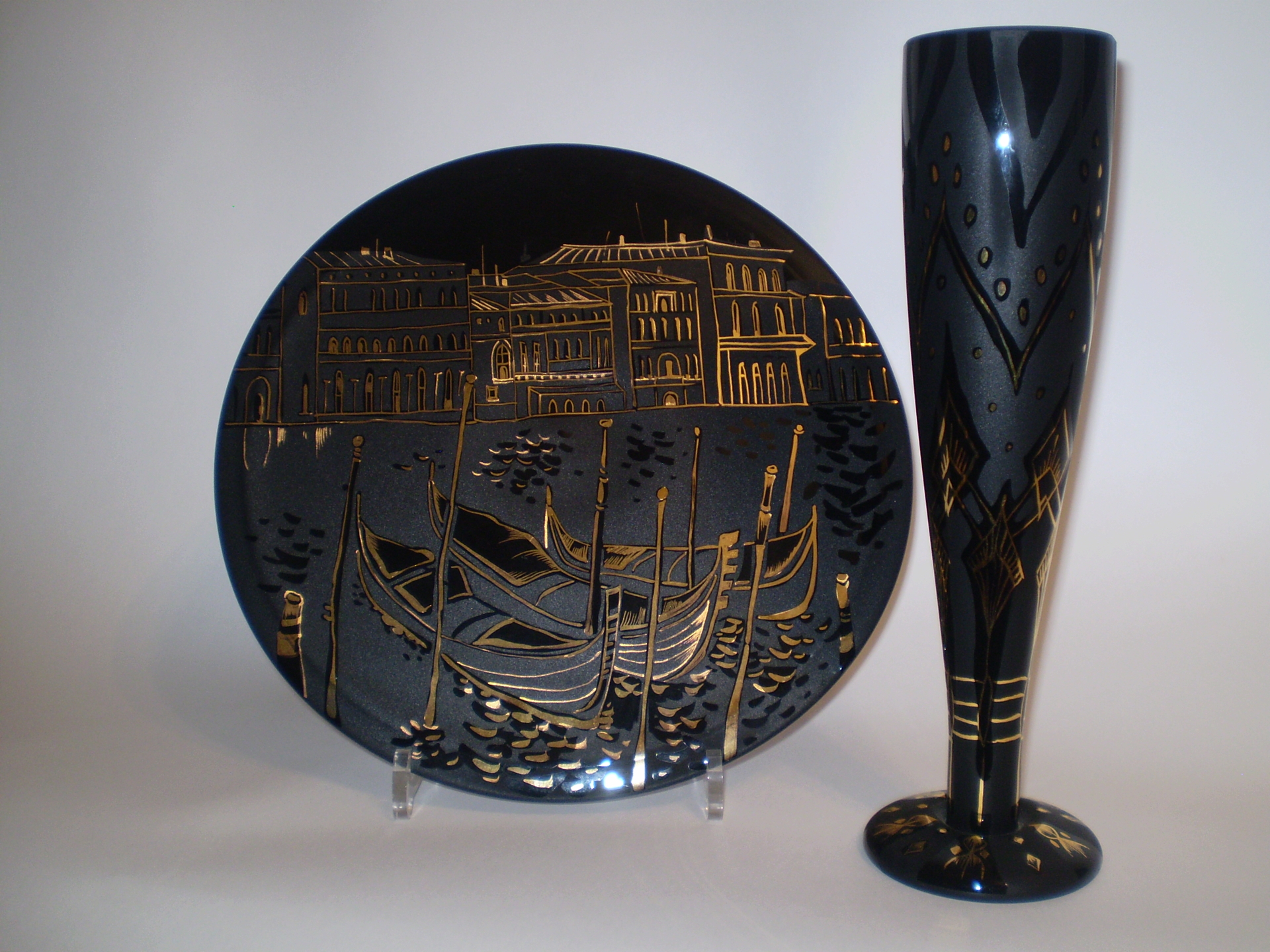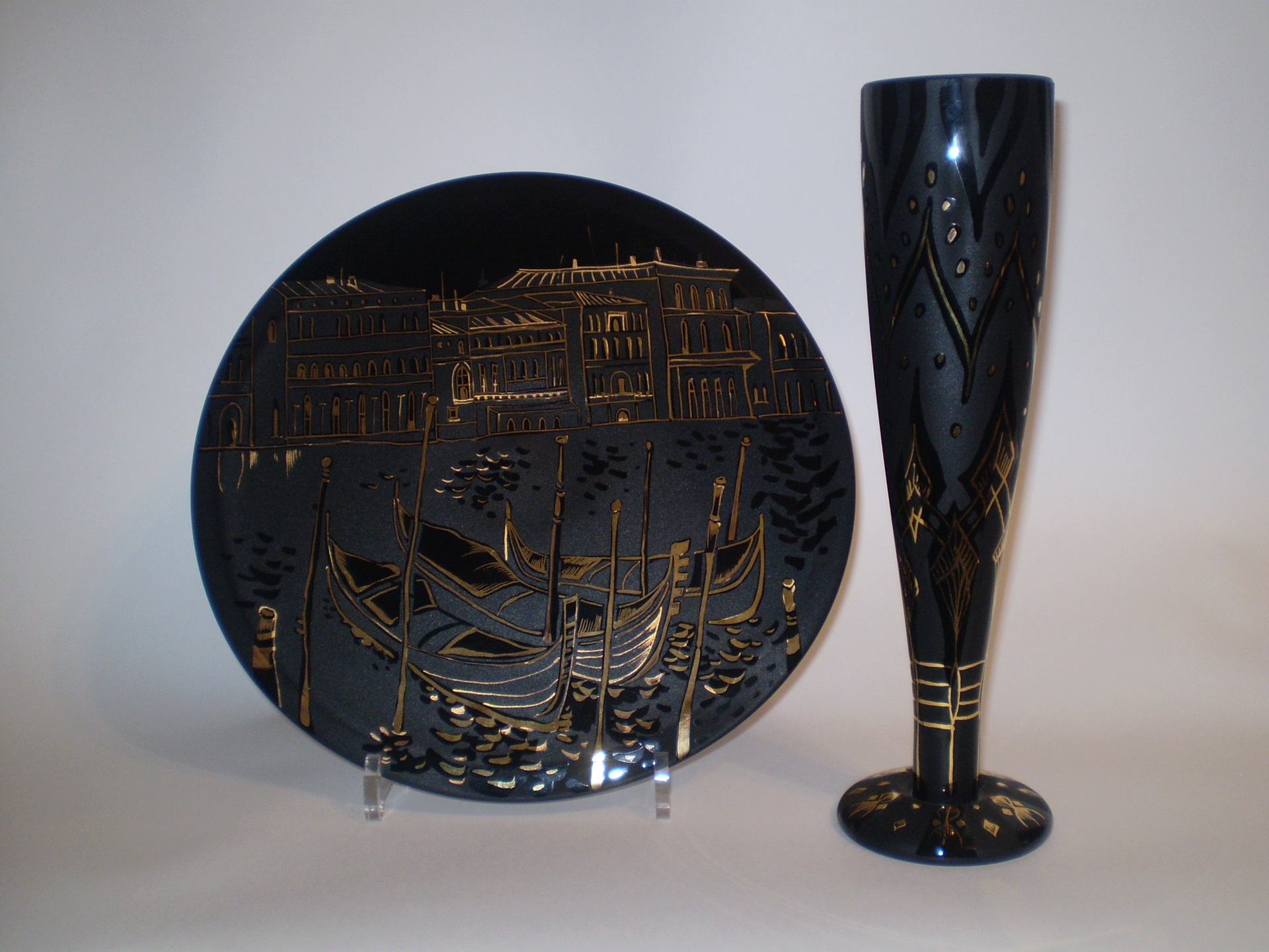 • Техника: цветное глушеное стекло, гутная техника свободного дутья,ручная роспись золотом,травление