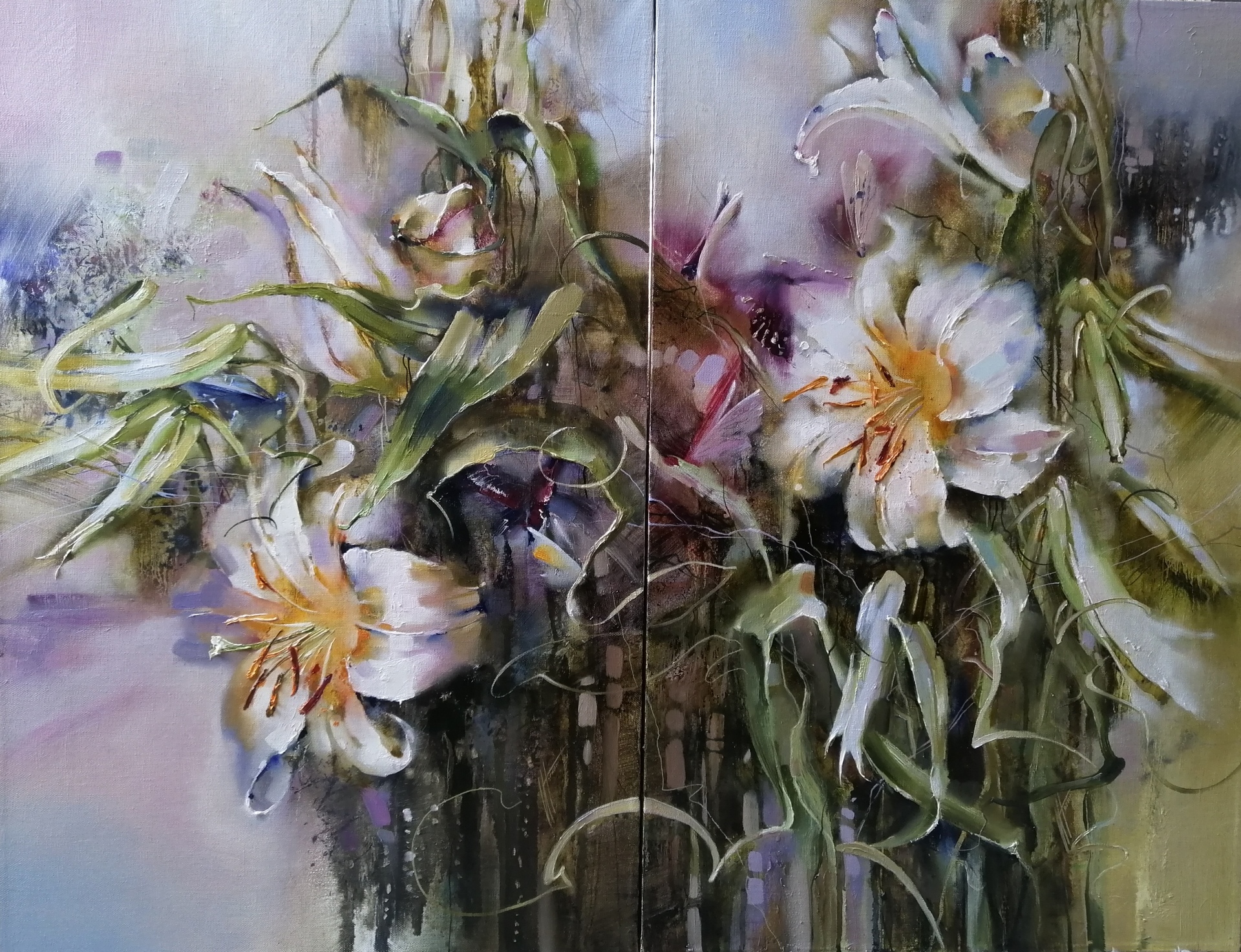 Диптих. Каждая работа 70*45. Галерейная натяжка холста.