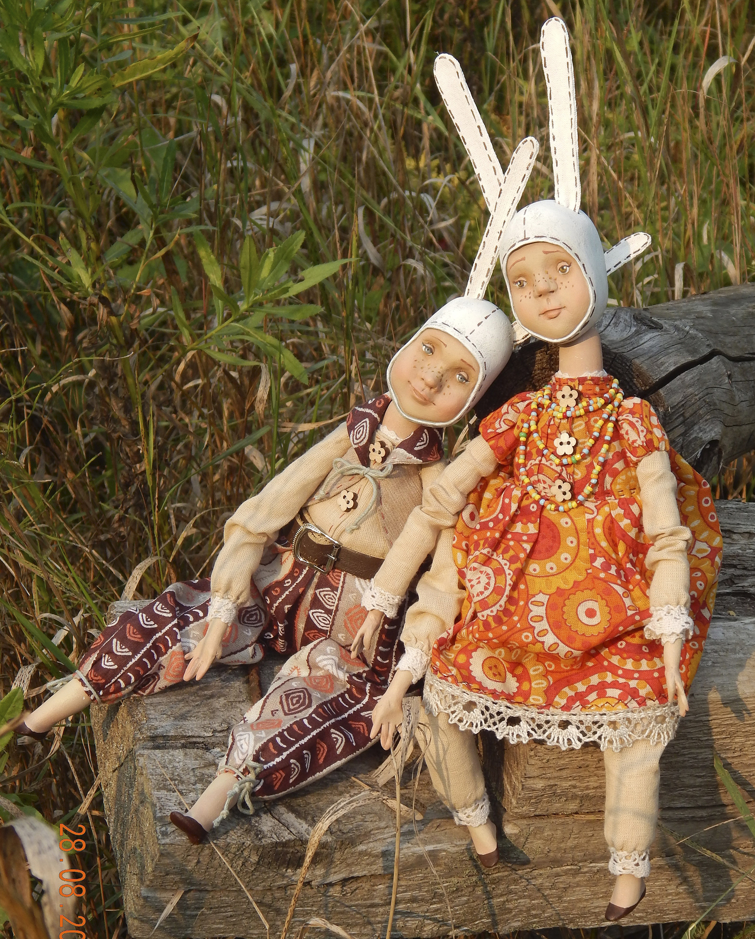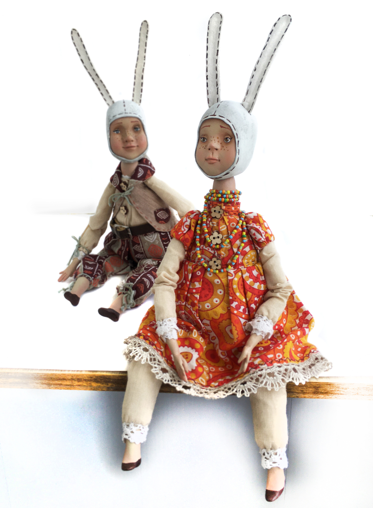 Две будуарные куклы- Степан и Маруся.Каждый - 30 см ростом(без ушей).Сидя - 18 см. Голова,ноги,руки - самозастывающий пластик.Роспись - акрил,лак.Тело текстильное,набито синтепоном и гранулятом.Голова,руки,ноги - подвижные. Одежда несъемная - х/б ткани,кружево,бисер,деревянная фурнитура.Цена за две куклы.