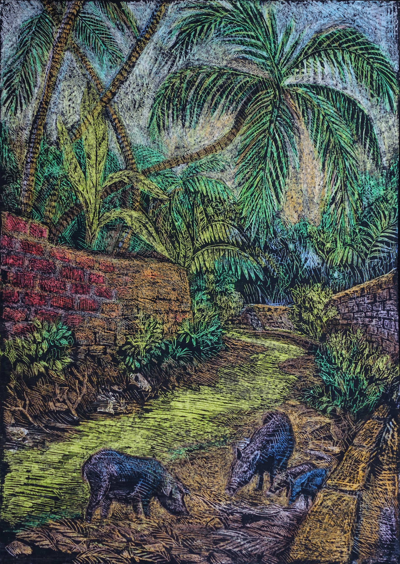 • Техника: Граттаж. бумага, масляная пастель, тушь, перо.