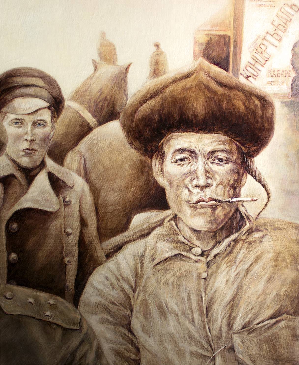 работа выполнена по уникальным материалам хроникально документального фильма снятого во Владивостоке в 1919 году неизвестным французским кинооператором. Исторический персонаж Радола Гайда. В интернете по нему есть вся информация.